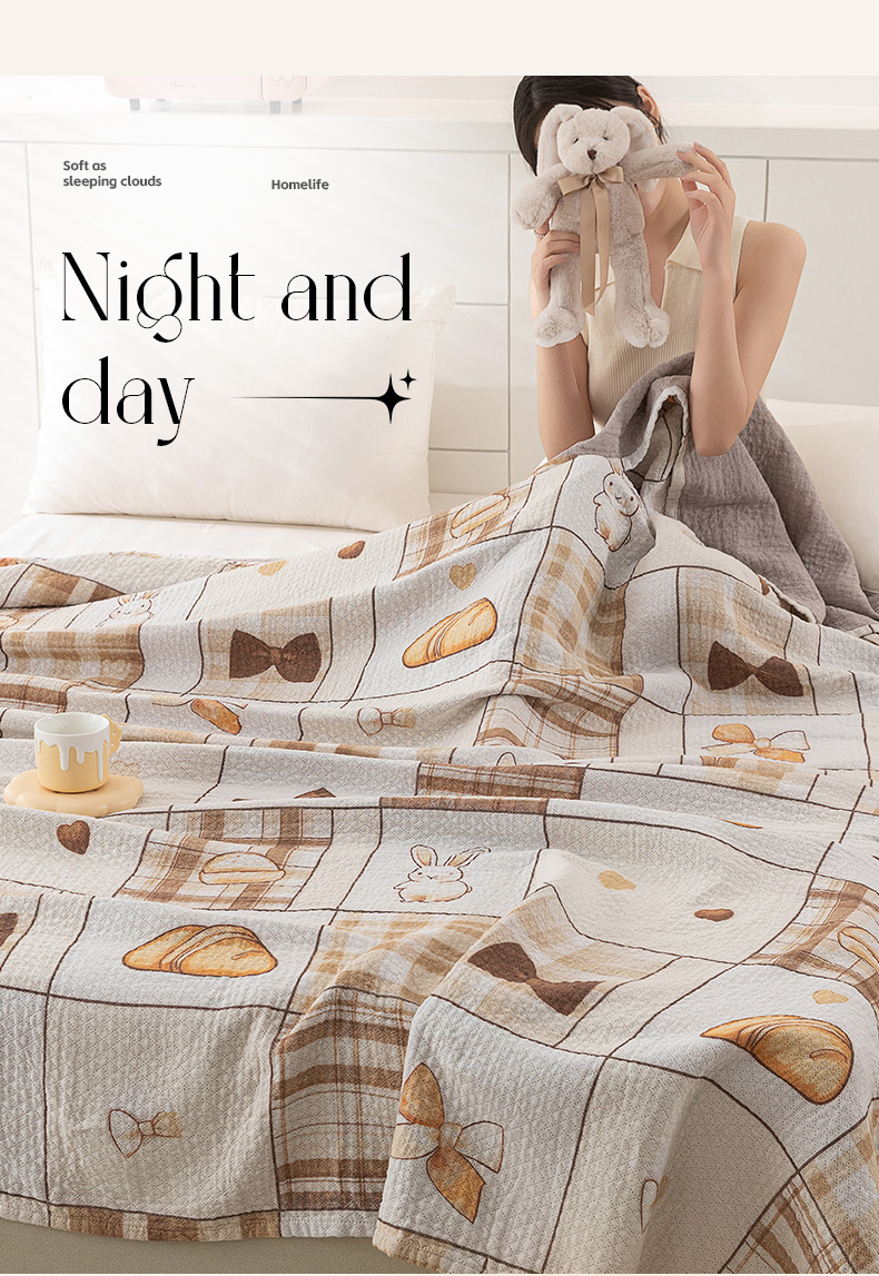 (总)乐家毛巾被(工厂自产自销) 2025新款A类全棉六层纱印花毛巾被,白色棉朵,彩蝶,彩虹小熊,动物派对,多彩南瓜,格子花花,黄油小熊,简笔森林,卡通狗狗,绿色茶花,莫比乌斯环,水墨花开,兔子小狗,吴丹花开,向日葵,尤加利,油画雏菊,happy腊肠狗