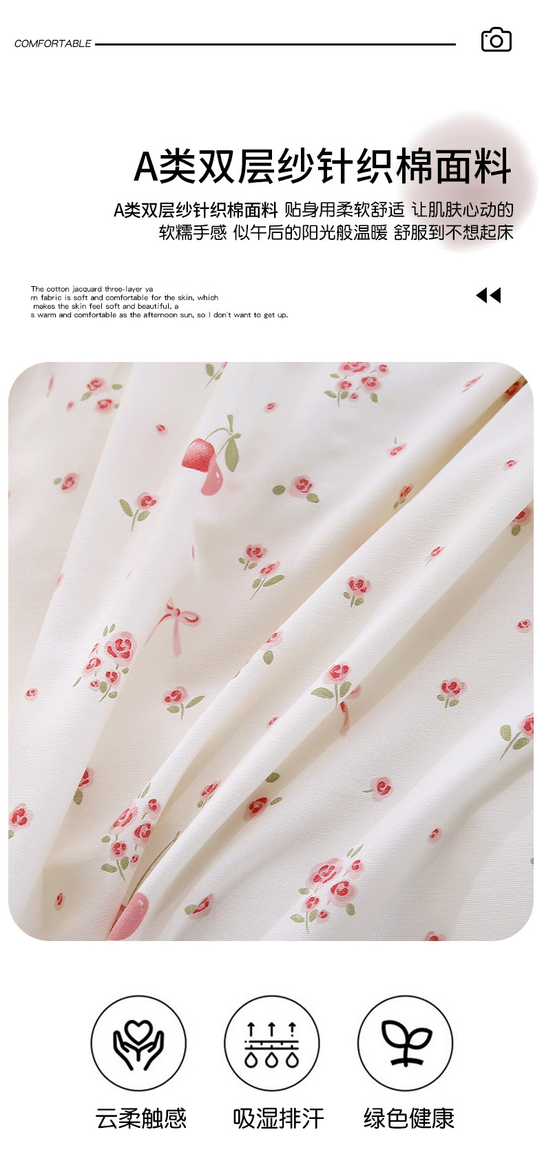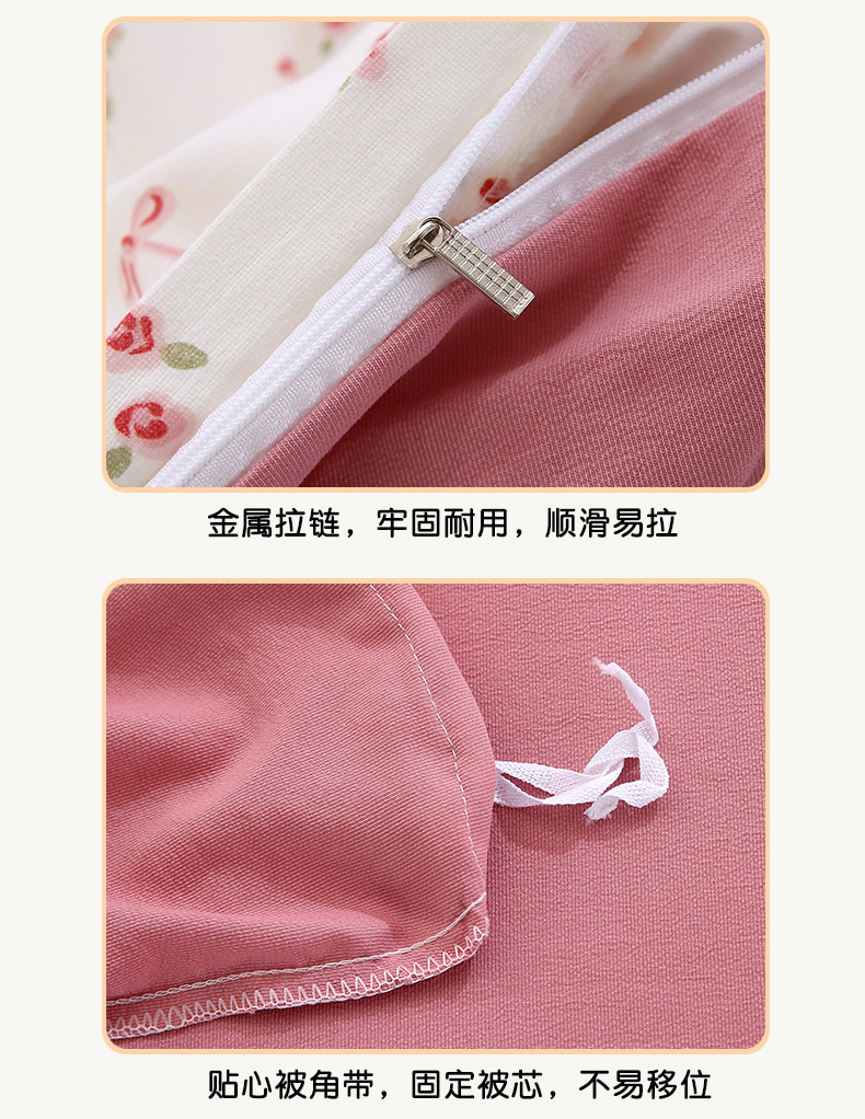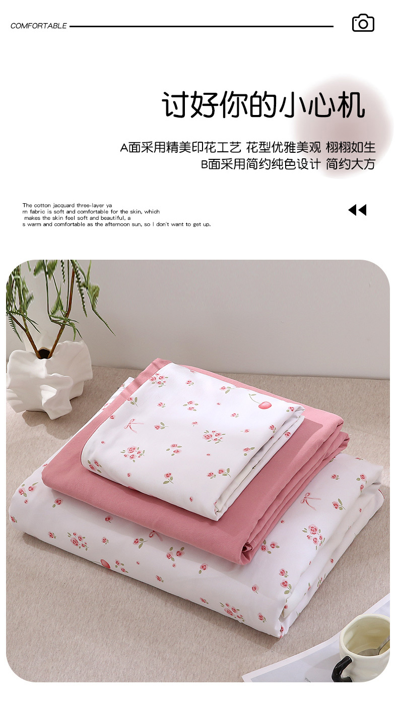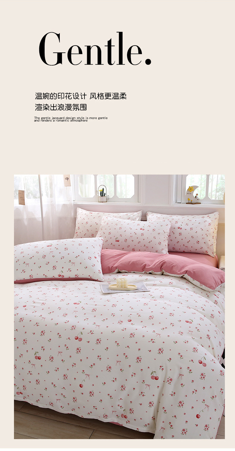 织写 2025新款A类双层纱针织棉四件套床单四件套床单四件套小清新四件套 红色樱桃,红色樱桃
