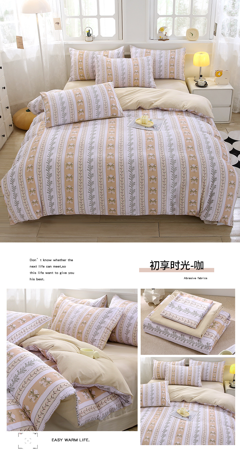 织写 2025新款A类双层纱针织棉四件套床单四件套床单四件套小清新四件套 初享时光-咖,初享时光-咖
