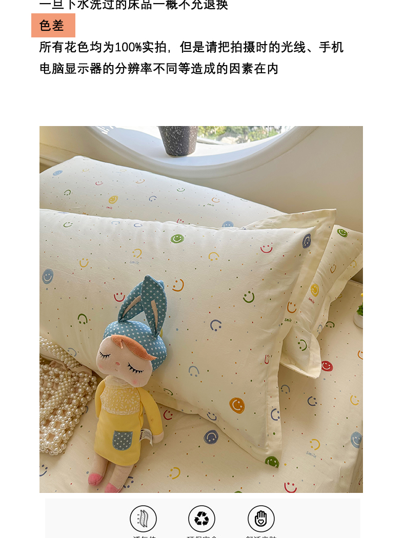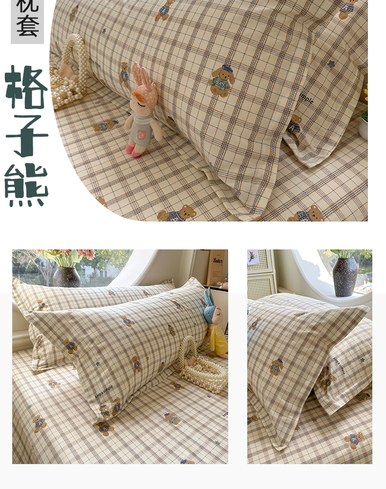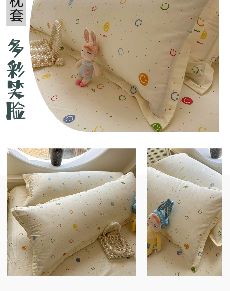 商品名称:百寐 2025新款13372全棉纯棉印花双人枕套+同款床单 泡芙狗