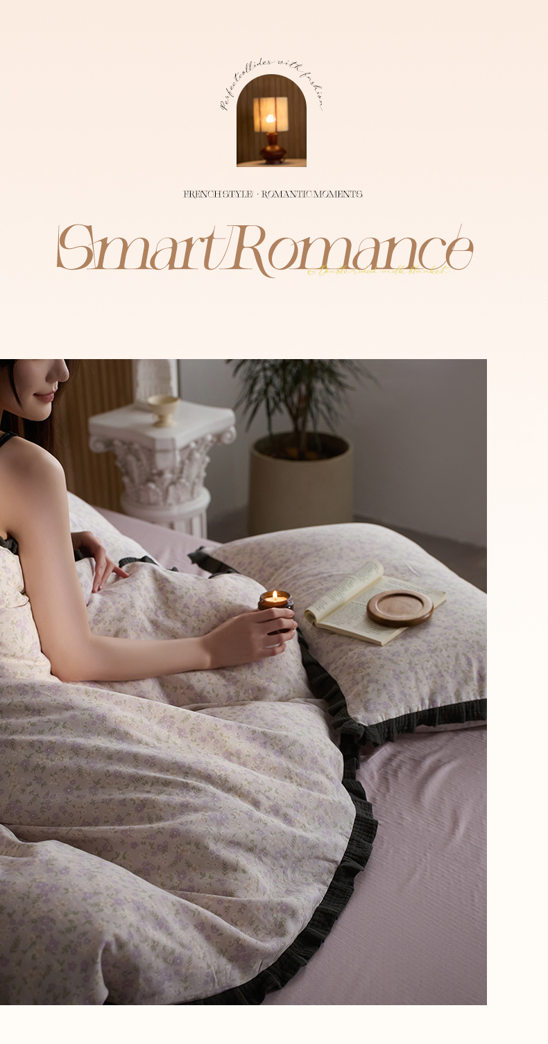 蓝邻家纺 2025新款全棉纯棉双层纱绉绉花边四件套系列 花漾流年