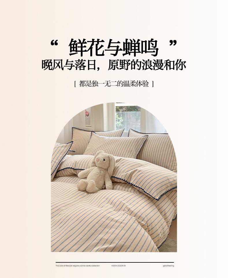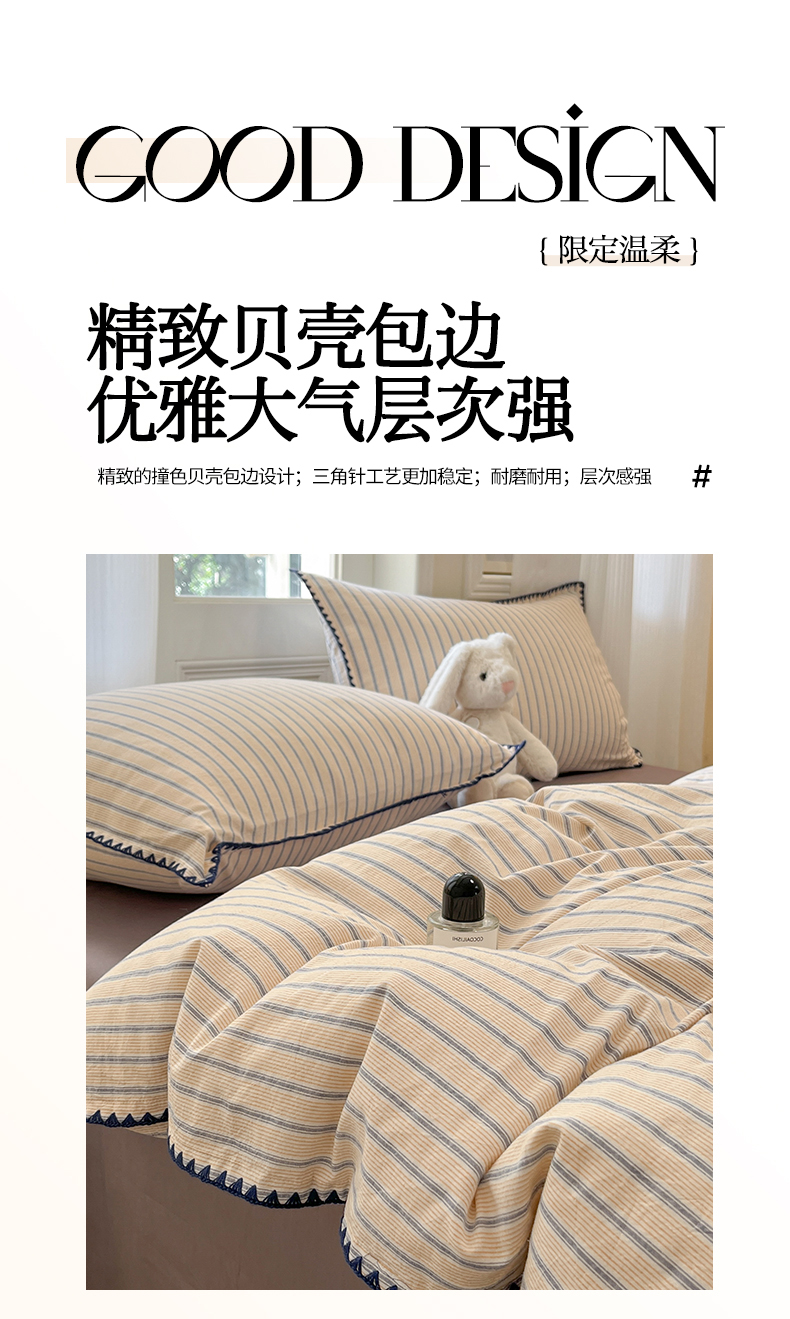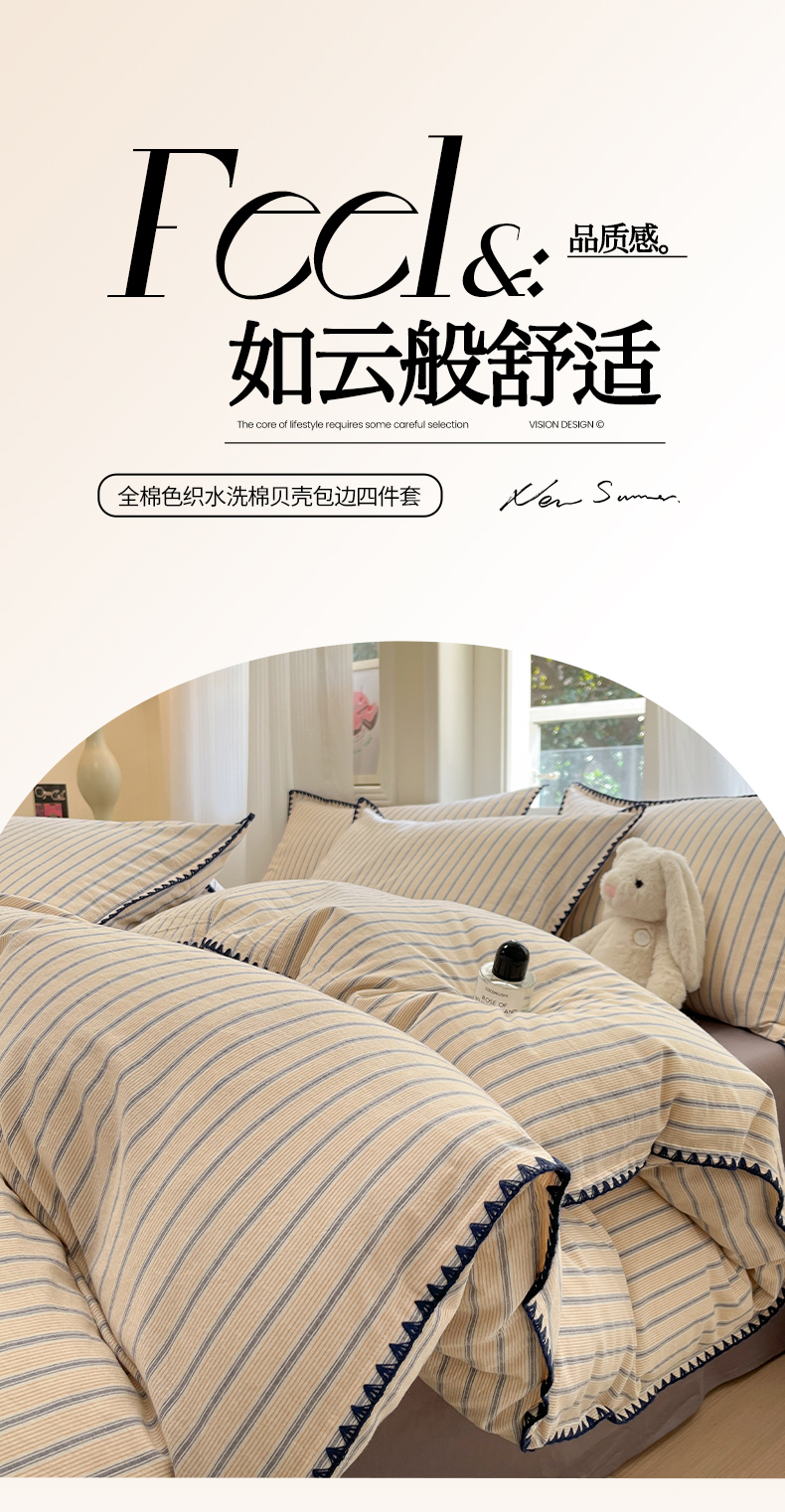 当前位置: 91家纺网 > 商品网购 > 床品套件 > 四件套 > 全棉活性四件套 > 莱茵家居 2025新款全棉色织水洗棉贝壳包边四件套生椰系列 声声乌龙