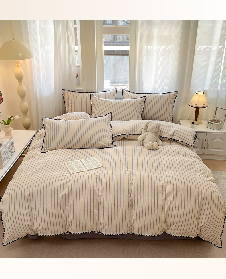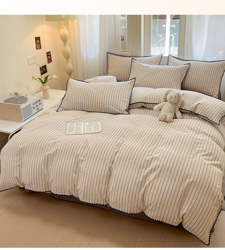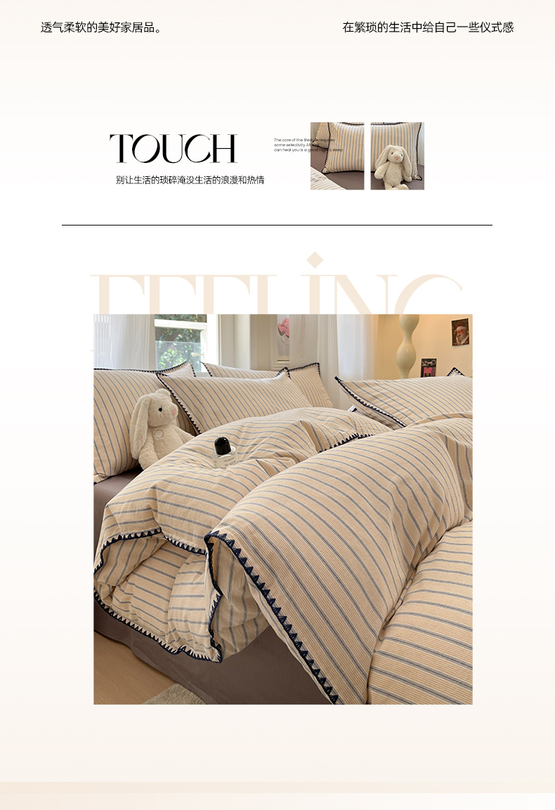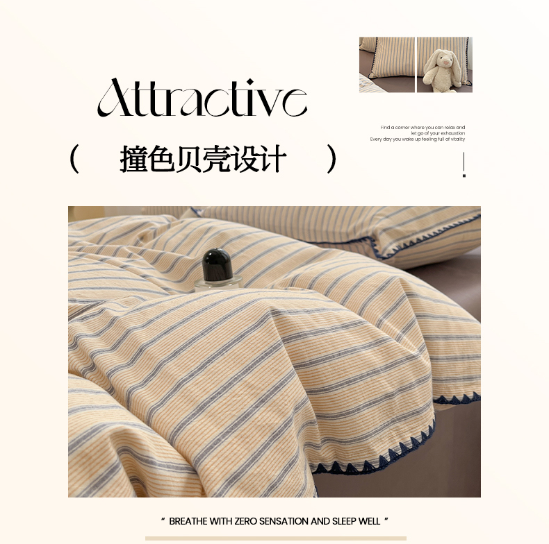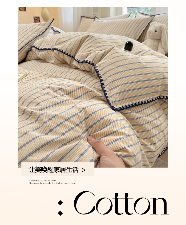 当前位置: 91家纺网 > 商品网购 > 床品套件 > 四件套 > 全棉活性四件套 > 莱茵家居 2025新款全棉色织水洗棉贝壳包边四件套生椰系列 声声乌龙