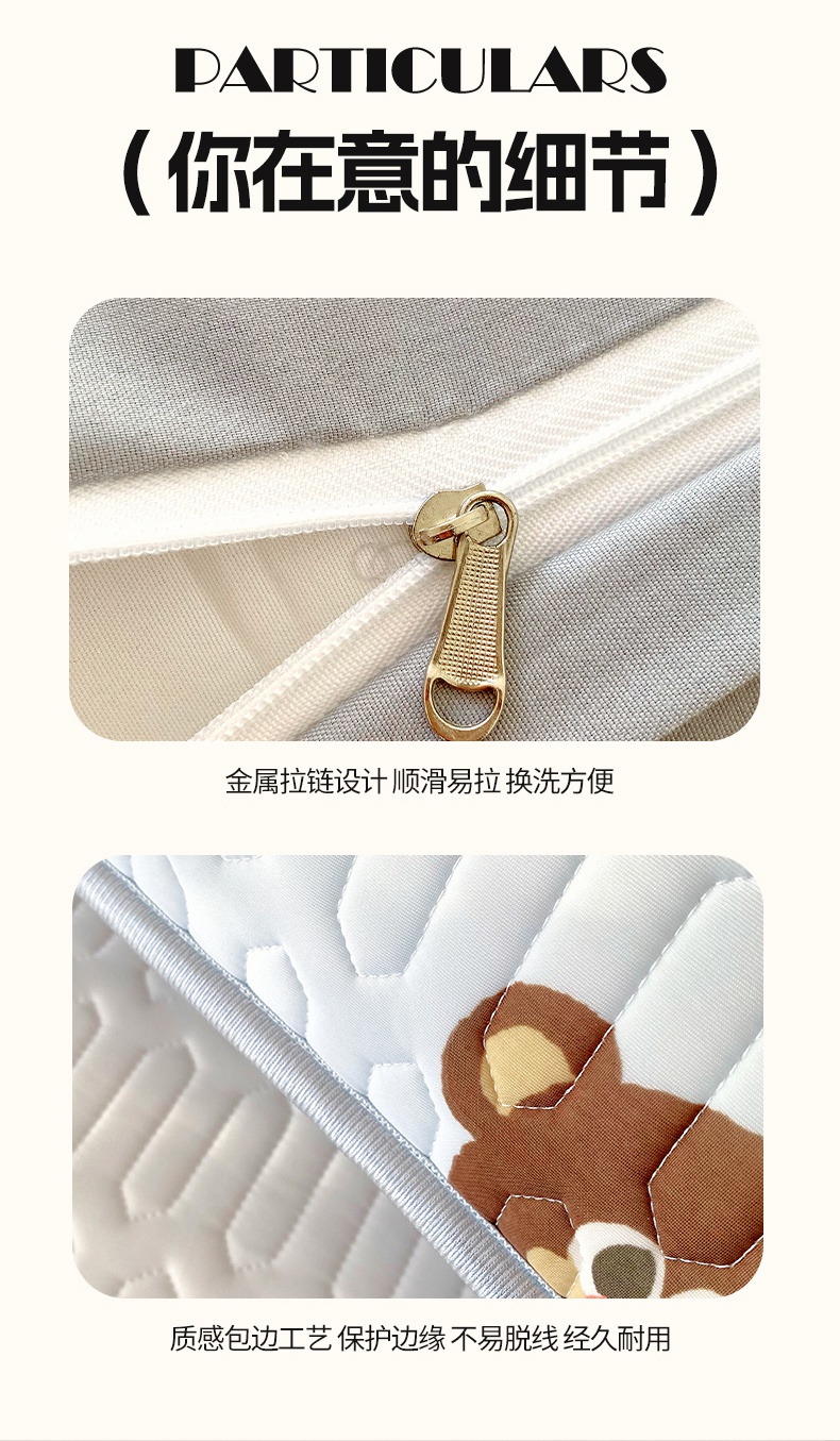 商品名称:雨彤家纺 2025年新款A类乳胶凉感丝双人长枕套 熊熊乐园-浅蓝