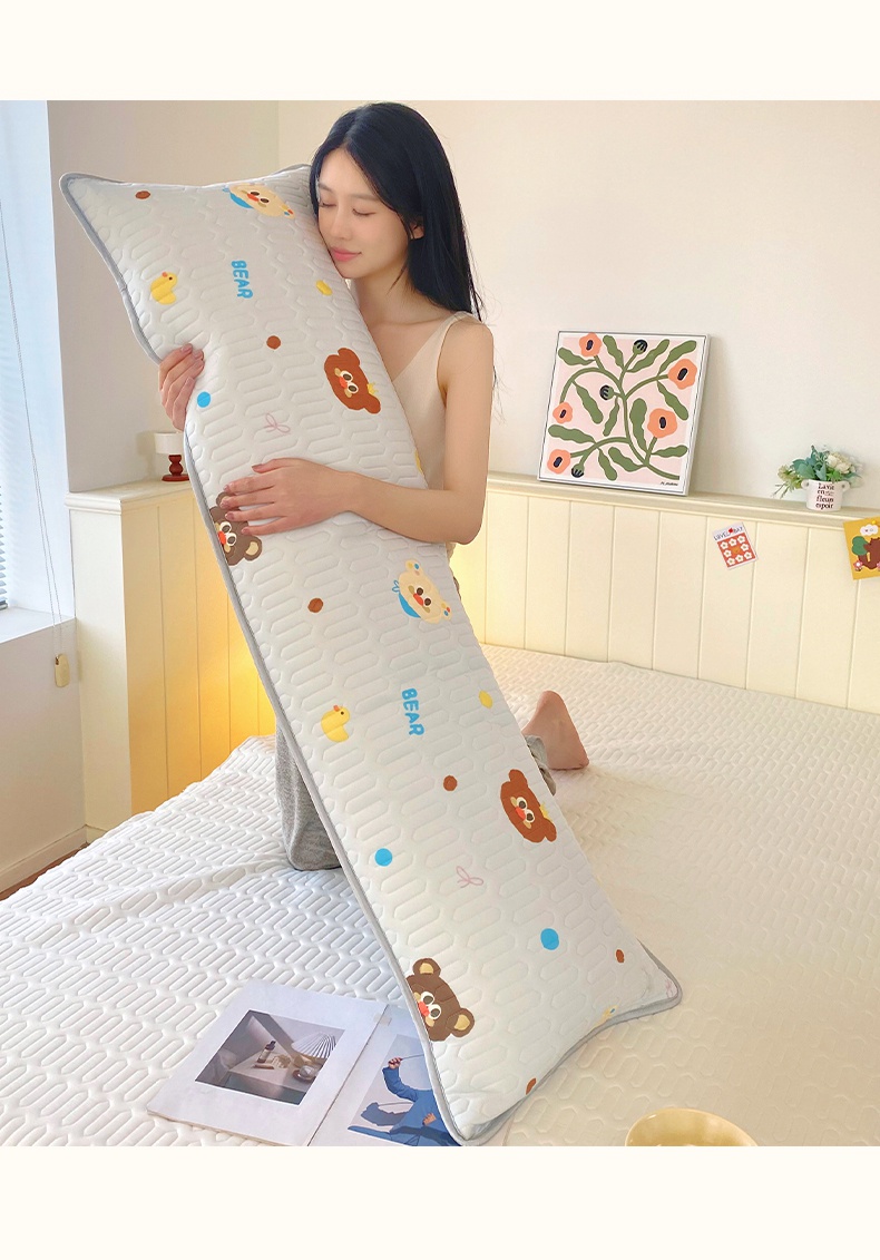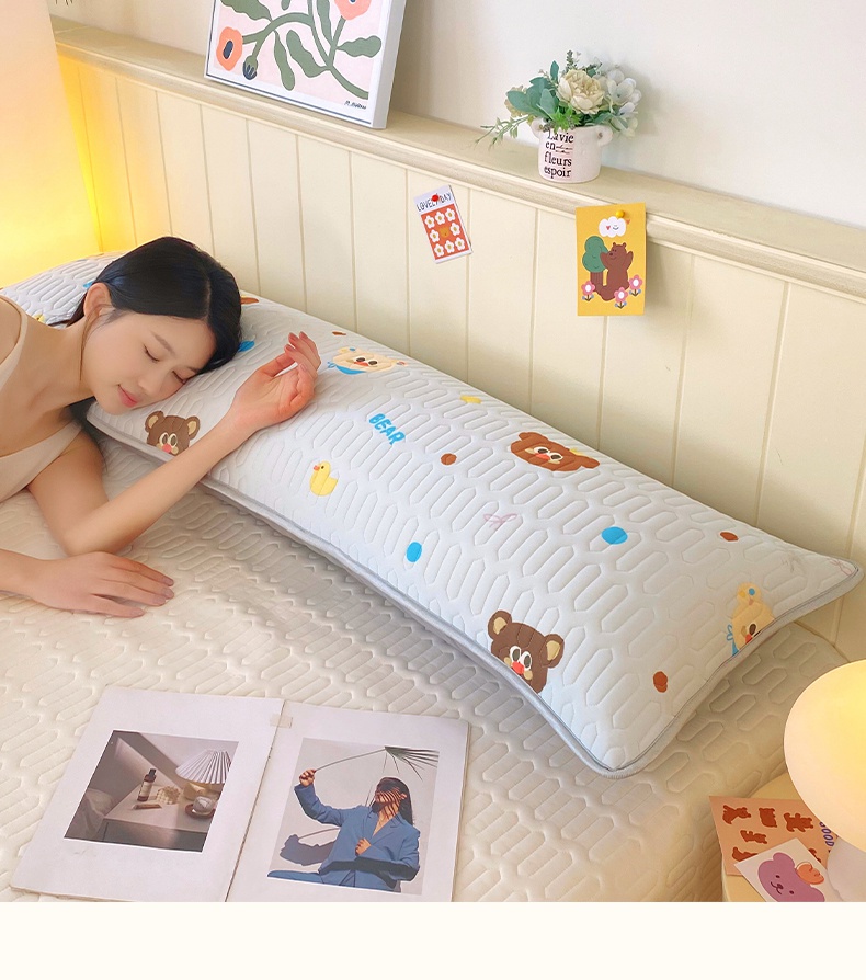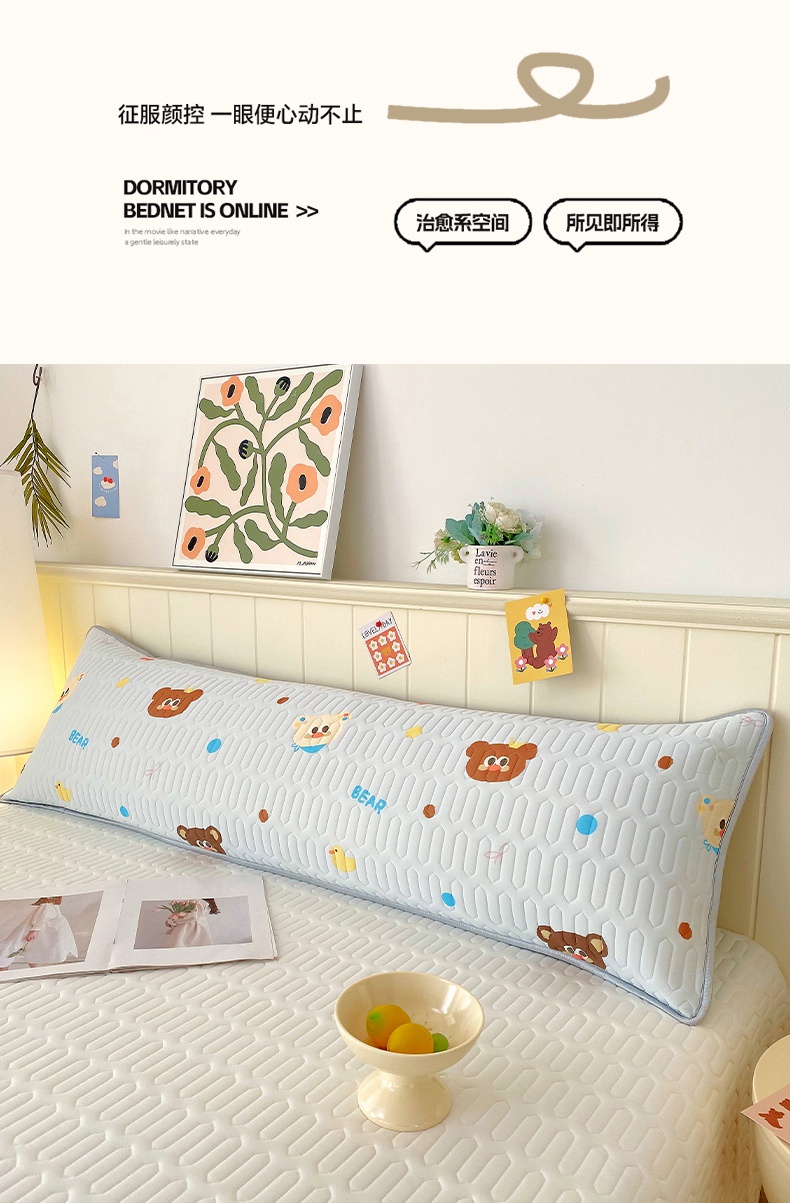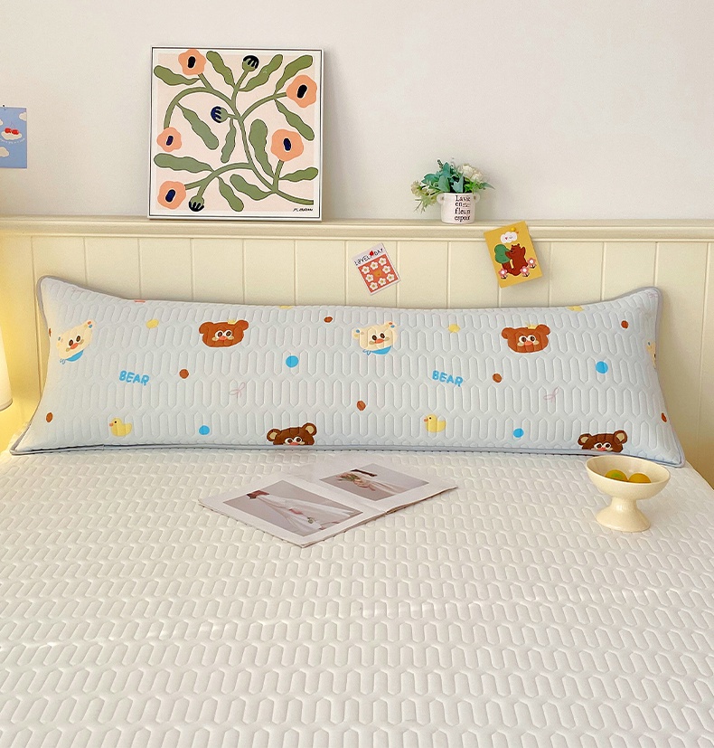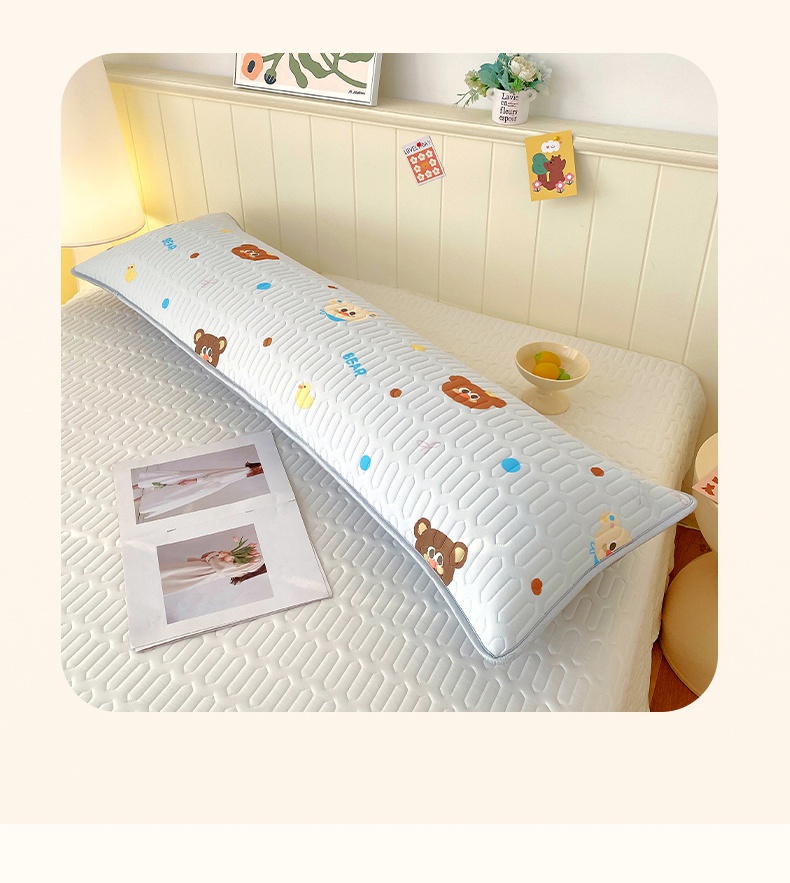 雨彤家纺 2025年新款A类乳胶凉感丝双人长枕套 熊熊乐园-浅蓝