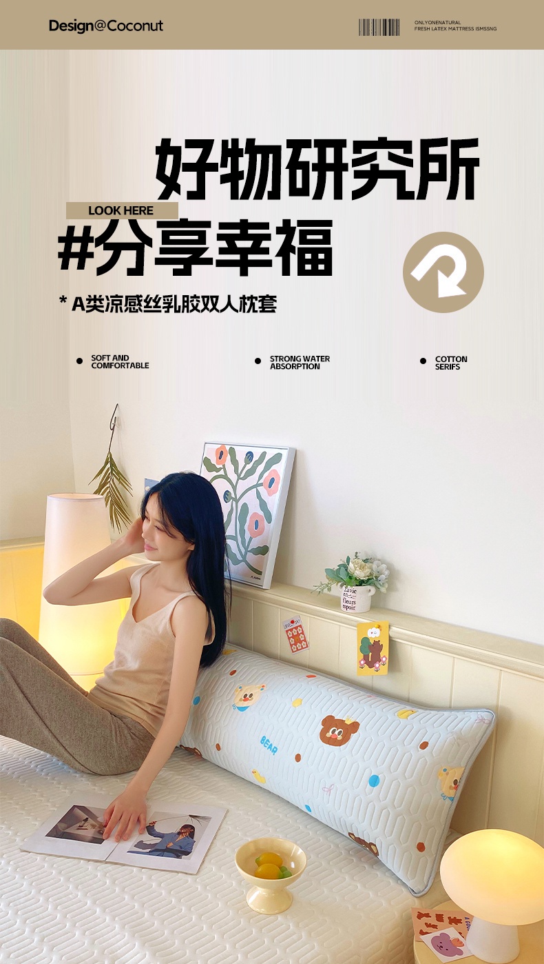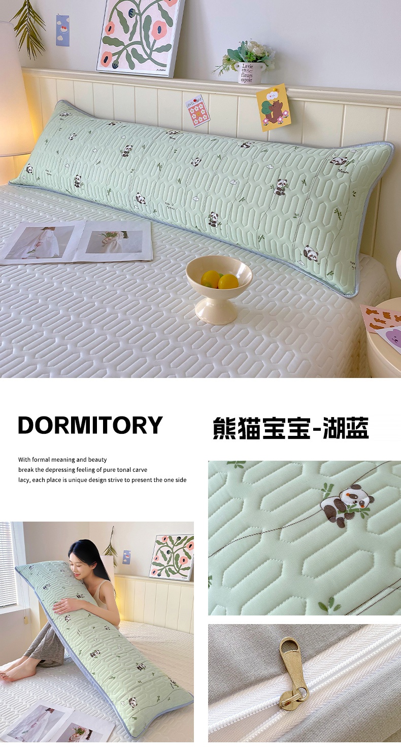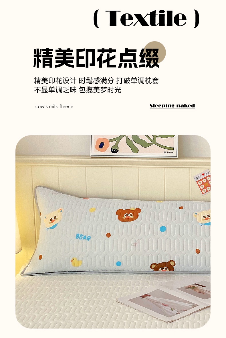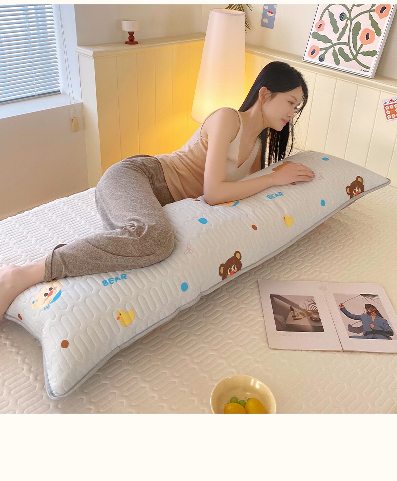 雨彤家纺 2025年新款A类乳胶凉感丝双人长枕套 熊熊乐园-浅蓝