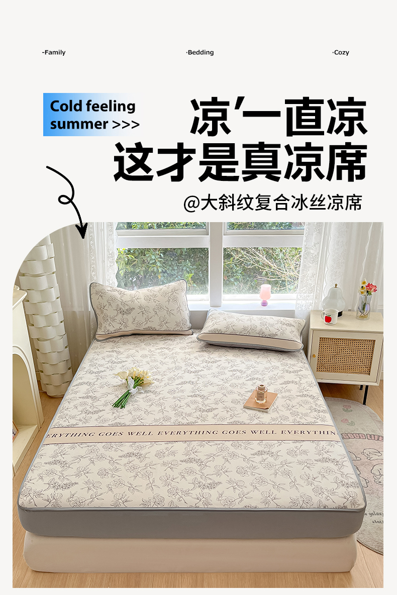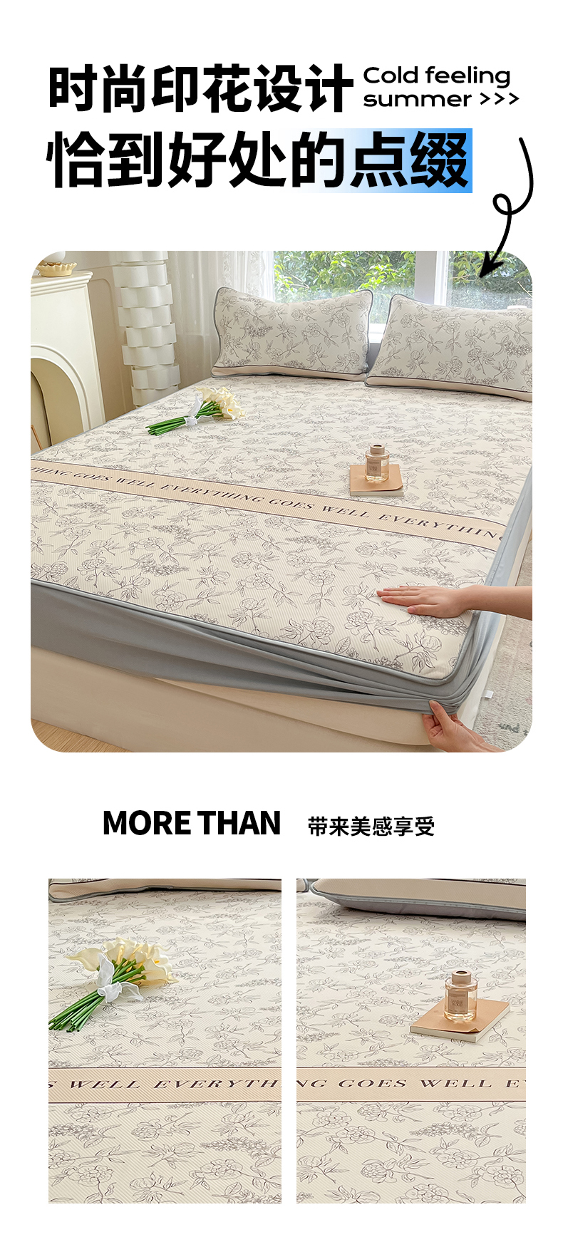 星座家纺 2025新款复合提花凉感丝凉席三件套床笠款 午后茶花-床笠款