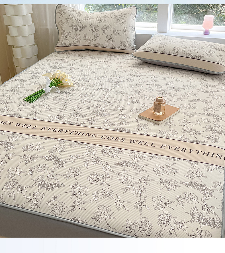 商品名称:星座家纺 2025新款复合提花凉感丝凉席三件套床笠款 午后茶花-床笠款