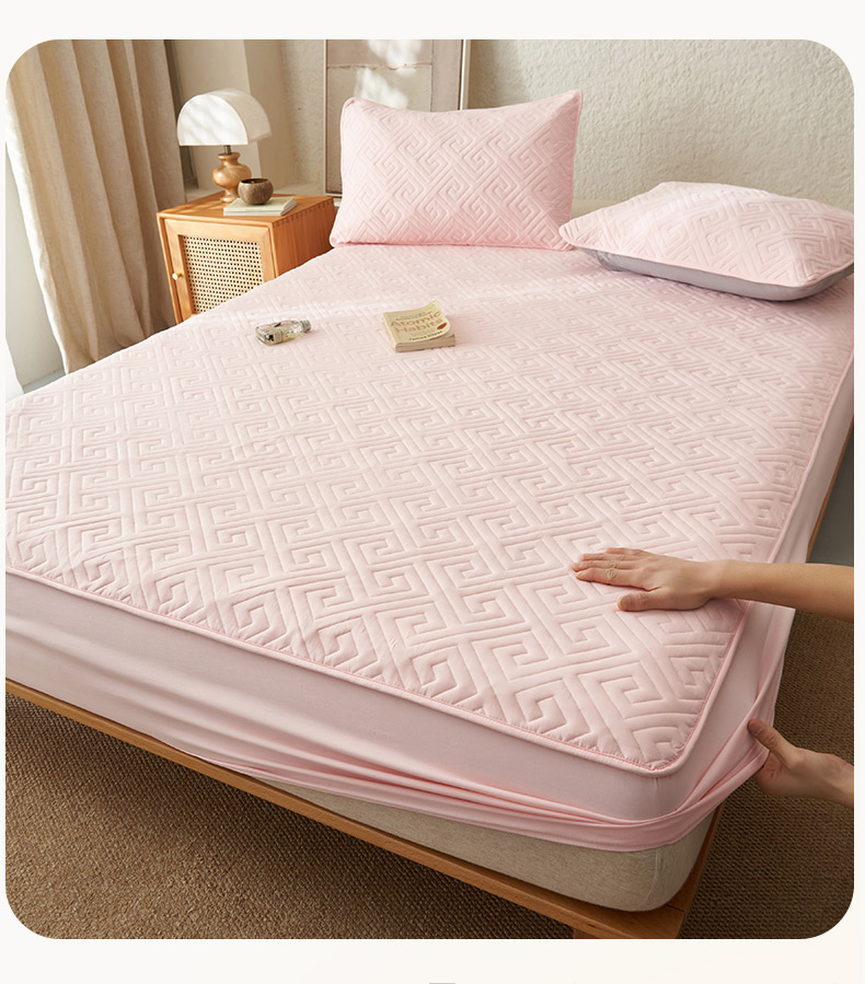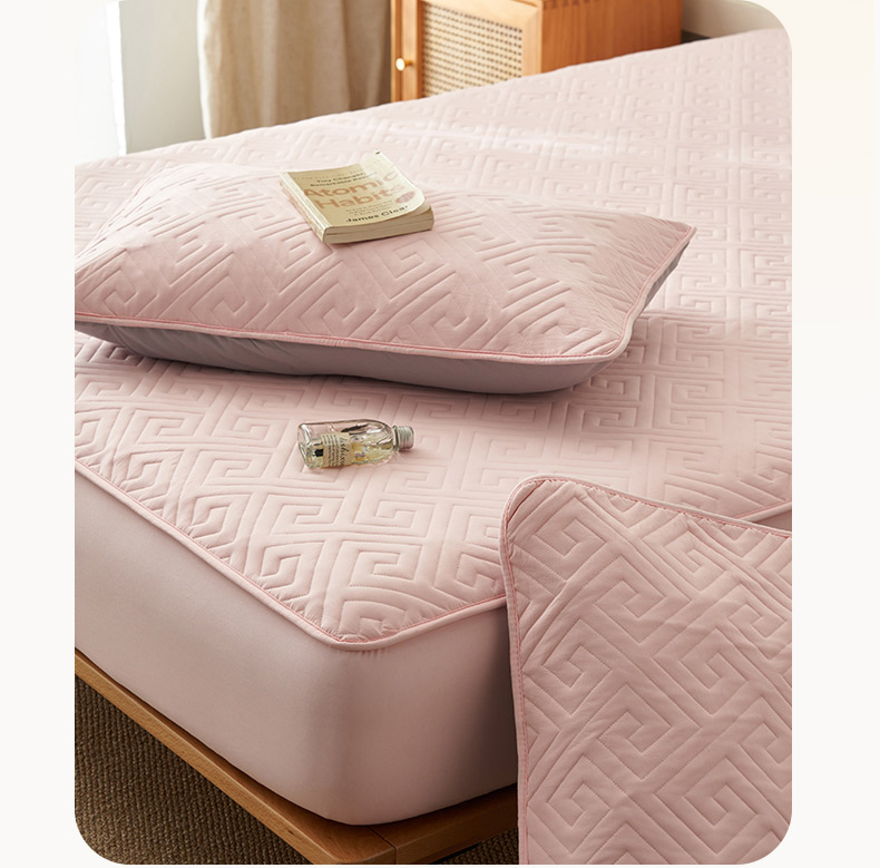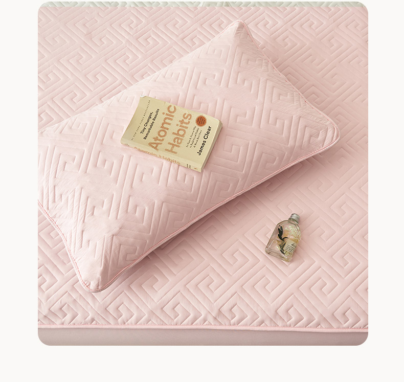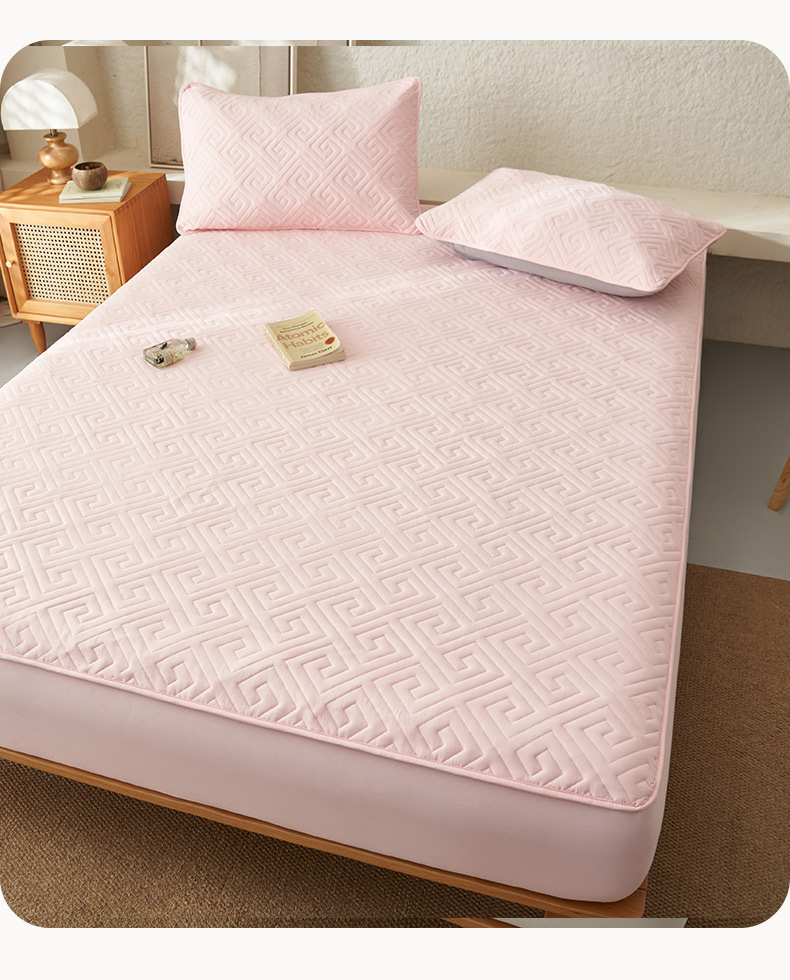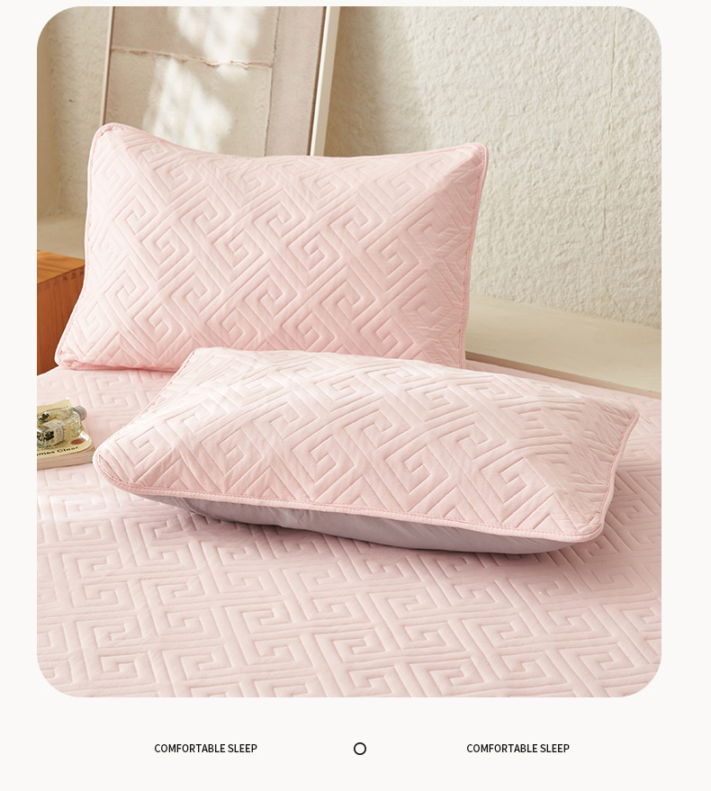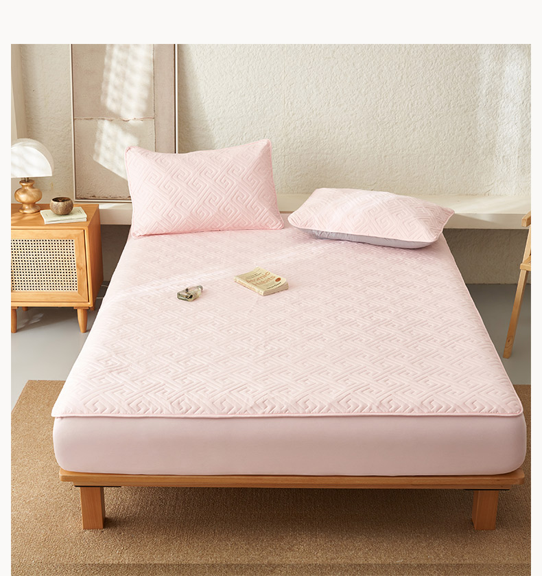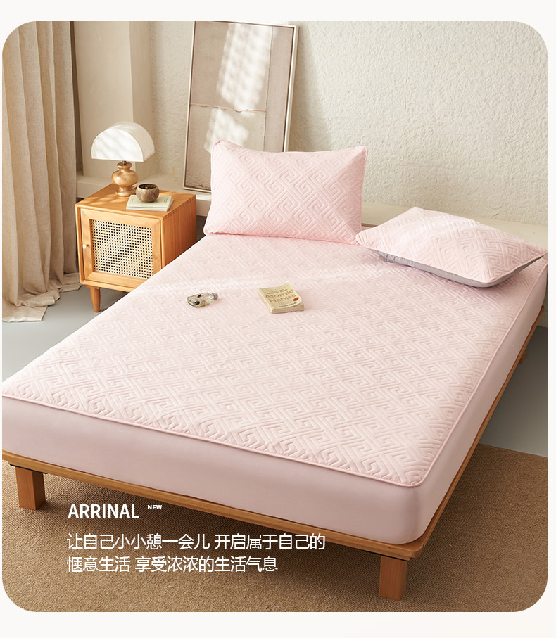 鑫琪莱家纺 2026新款水洗棉绗绣夹棉床笠 夹棉床笠-粉玉