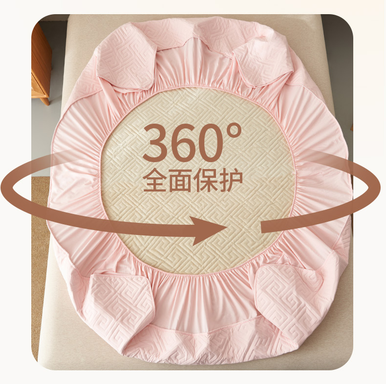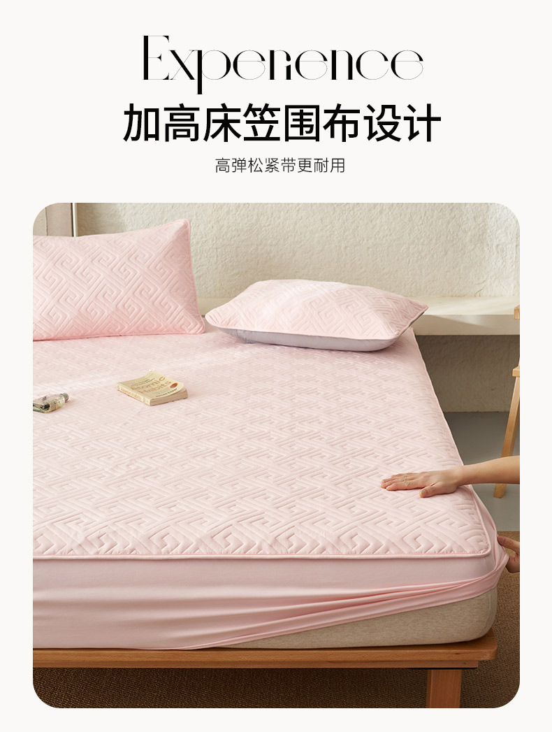 商品名称:鑫琪莱家纺 2026新款水洗棉绗绣夹棉床笠 夹棉床笠-粉玉