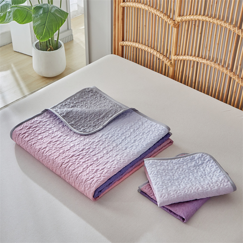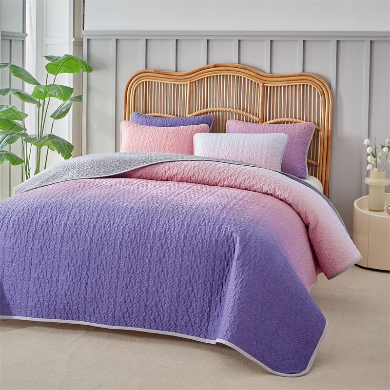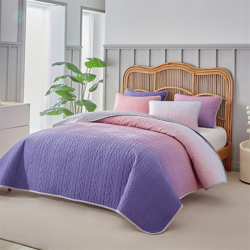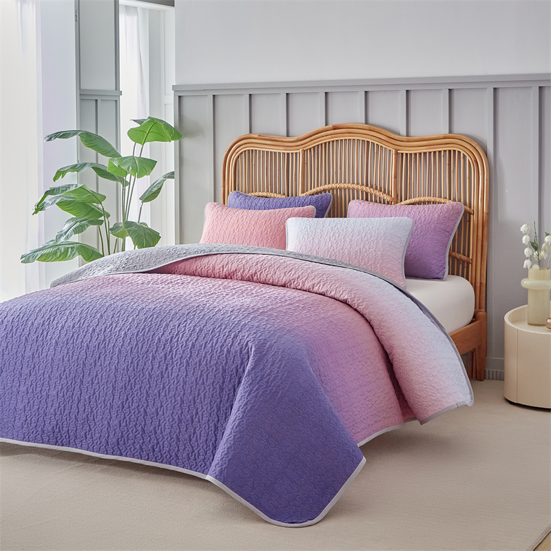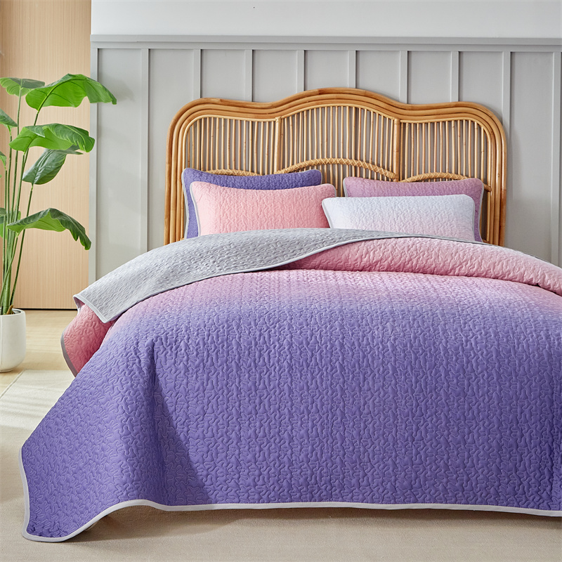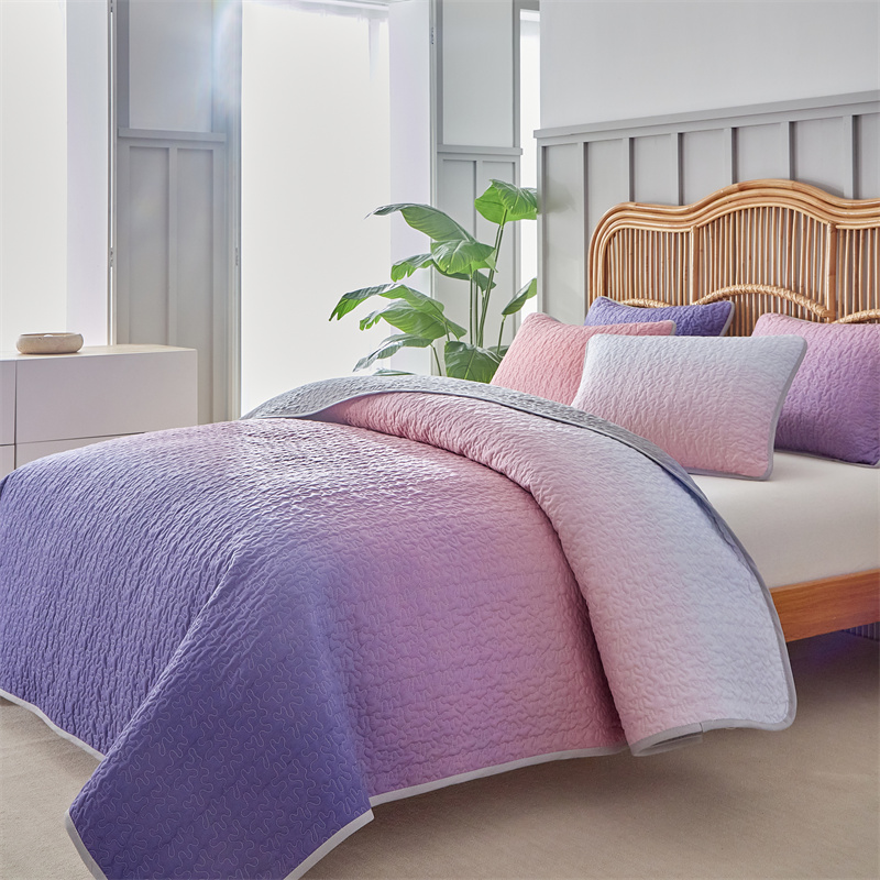 温宁家纺 2025新款跨境双面化纤水洗棉传统印花夹棉四季床盖 渐变蓝紫