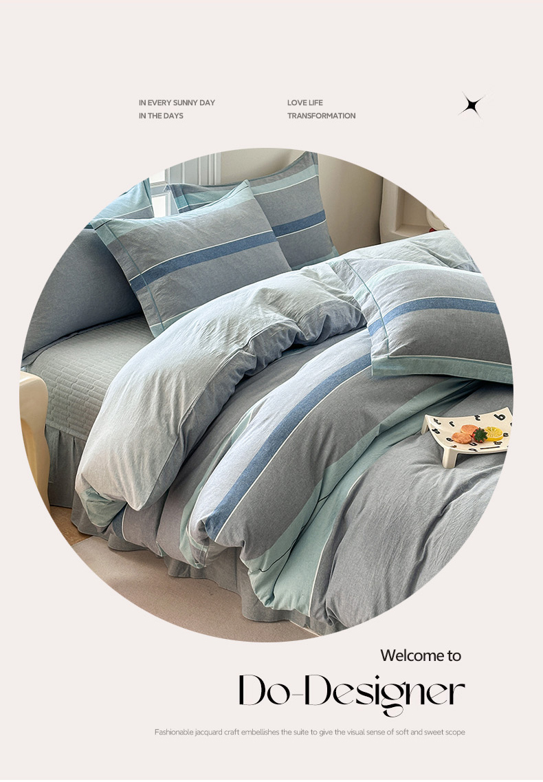 (总)金窝窝家纺 2025新款全棉色织水洗棉床盖四件套,春意盎然淡绿色,春薏时尚灰,多爱多粉色,繁星奶咖米格,绿咖时尚格,米菲灰,米格,浅兰小格