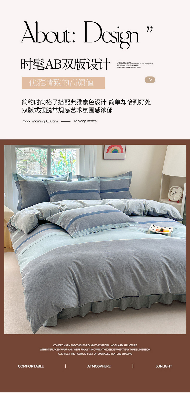 商品名称:金窝窝家纺 2025新款全棉色织水洗棉床盖四件套 米菲灰