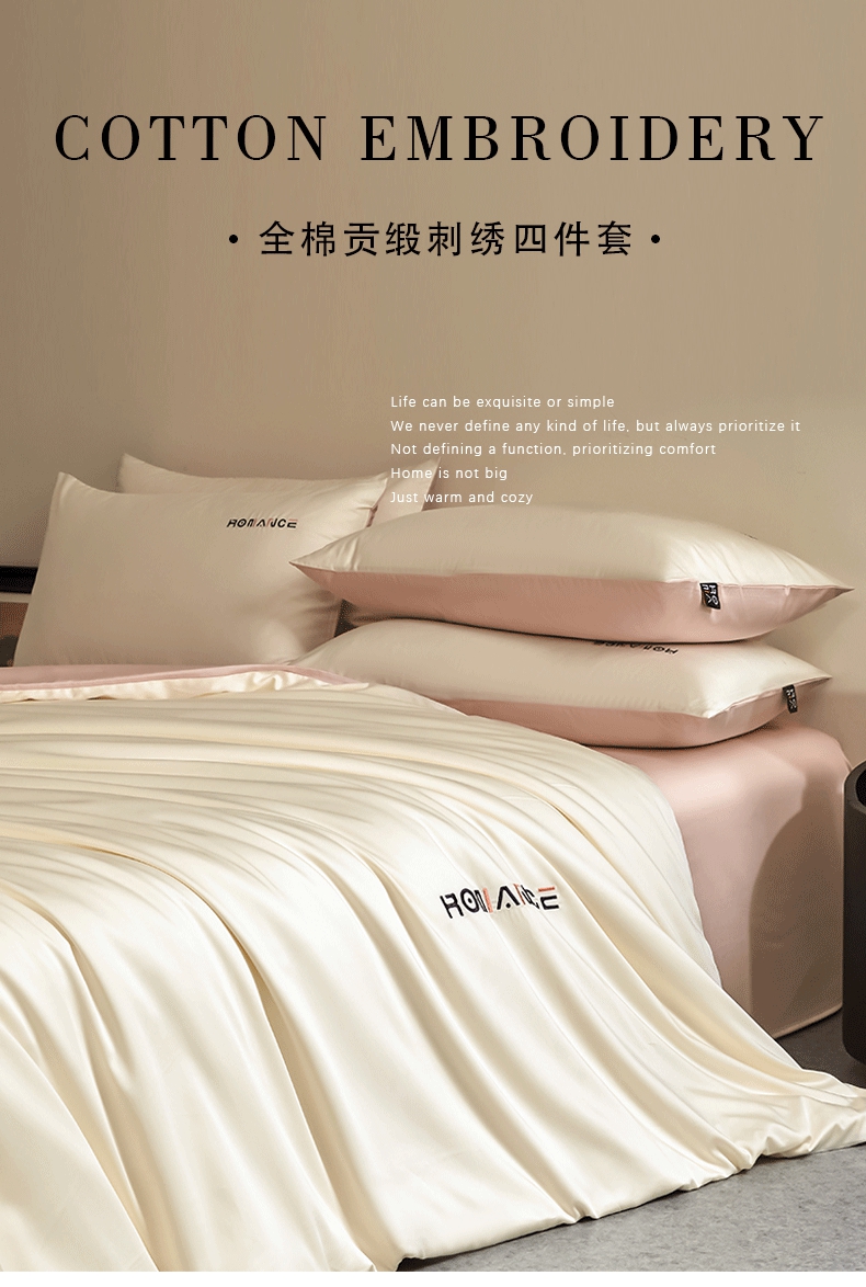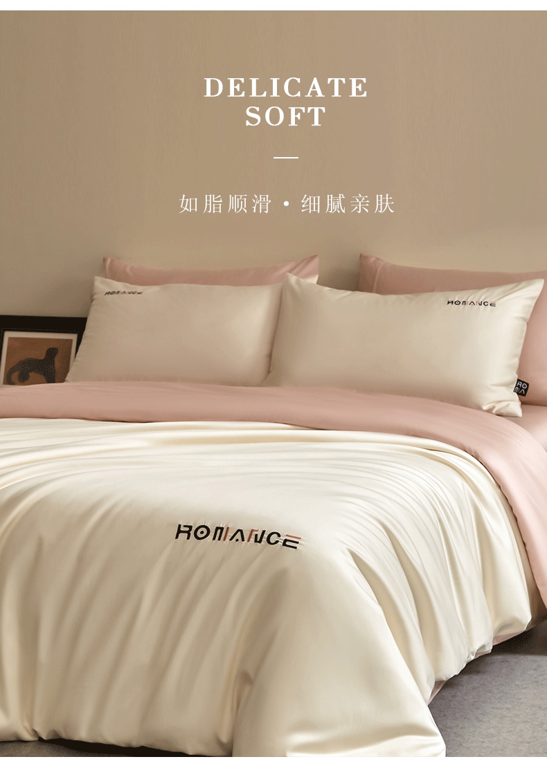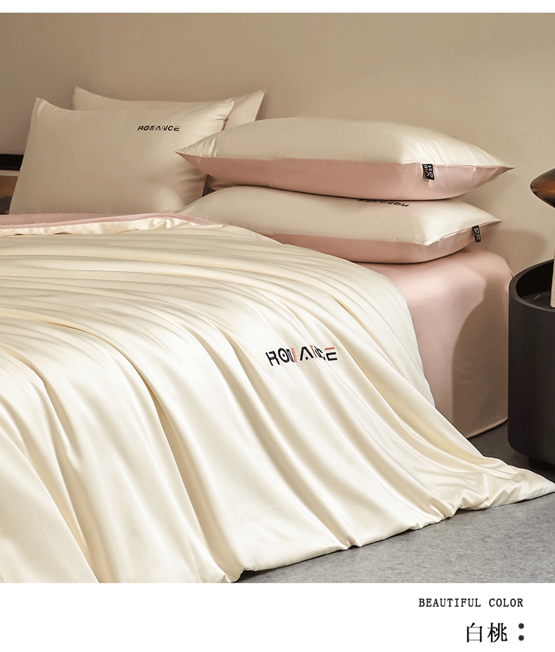 商品名称:618家纺 2025新款A类全棉60S100支纯棉长绒棉四件套系列 简爱白桃