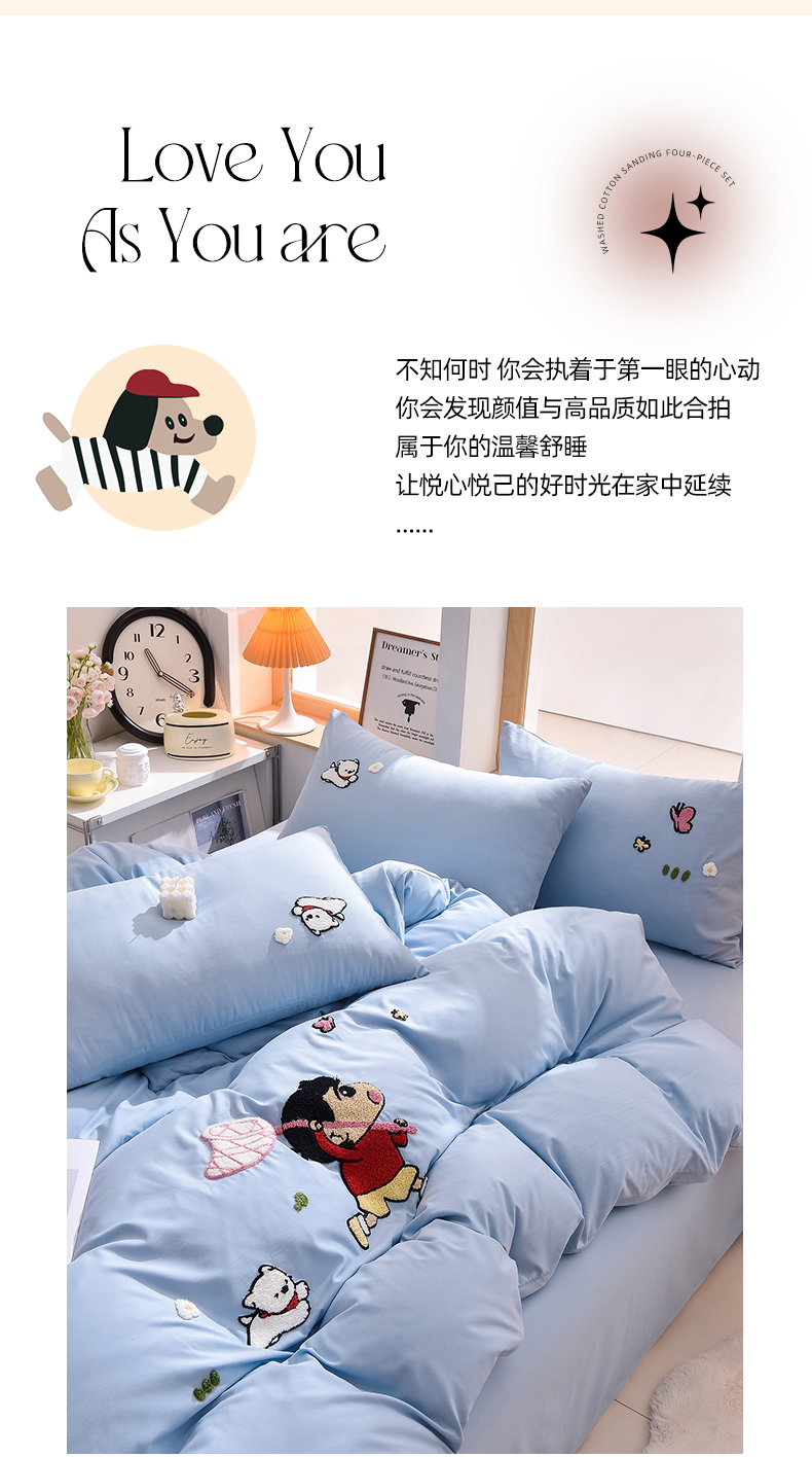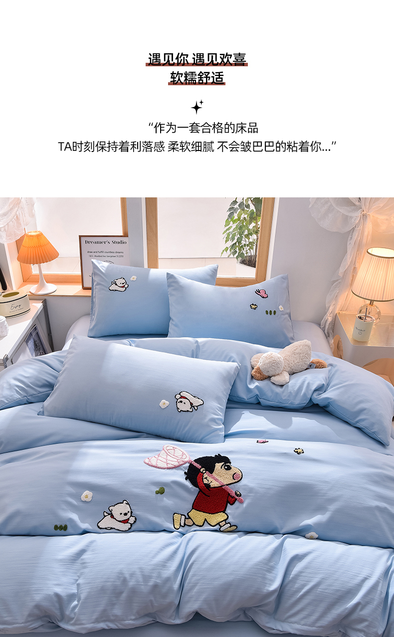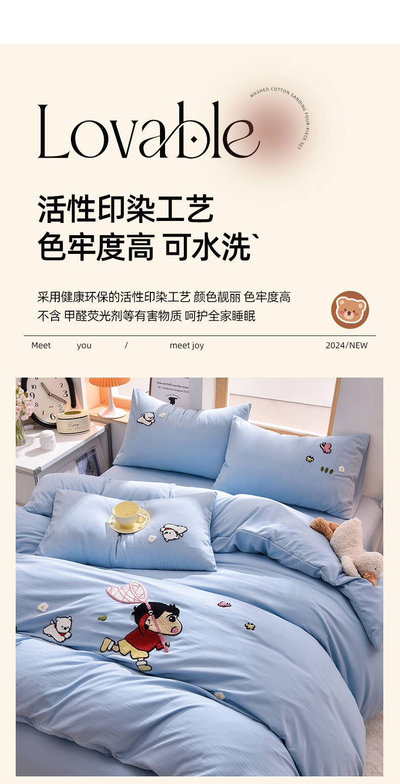 (总)乐窝家纺仓储 2025新款云朵棉毛巾绣磨毛四件套,蜡笔小新,KT猫,熊猫乐园,海绵宝宝