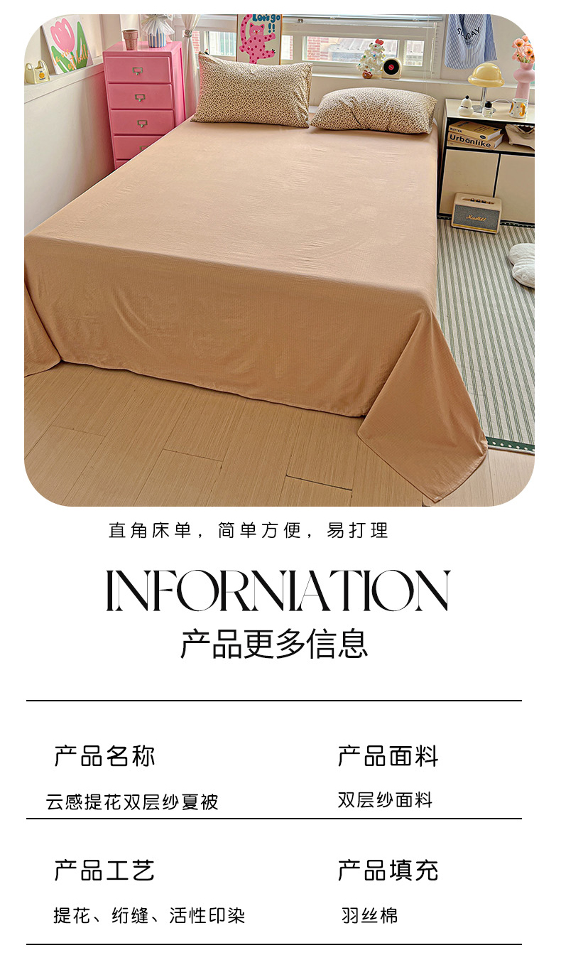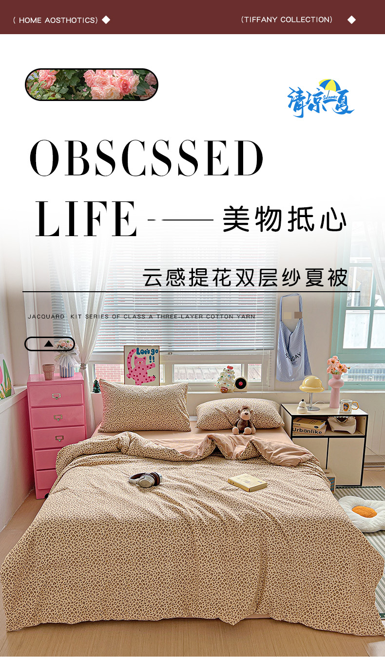 • 91家纺网 家纺一手货源 找家纺 奈颜  2025新款爆款超柔云感提花双层纱夏凉被四件套 奶咖豹纹