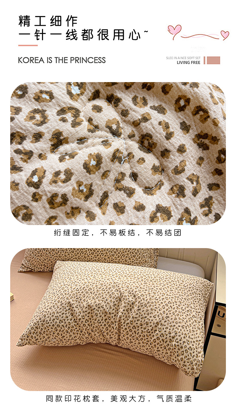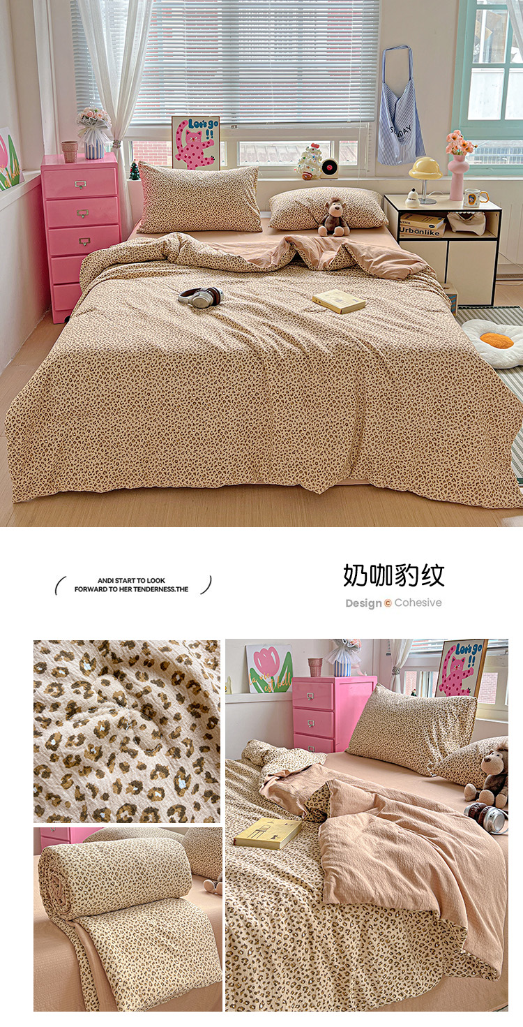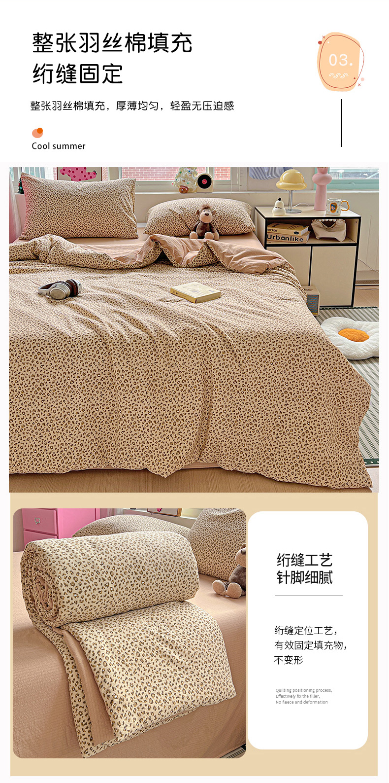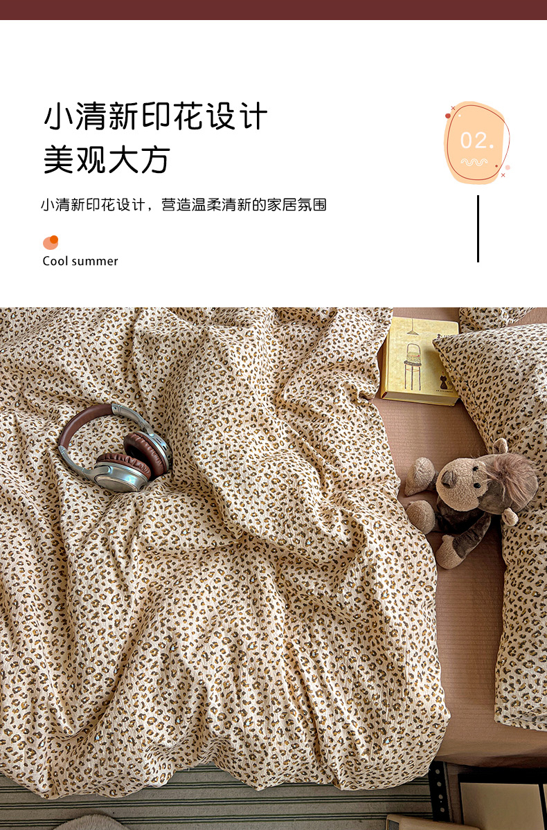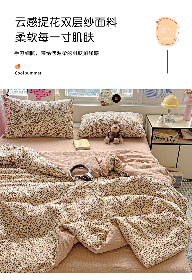 奈颜 2025新款爆款超柔云感提花双层纱夏凉被四件套 奶咖豹纹