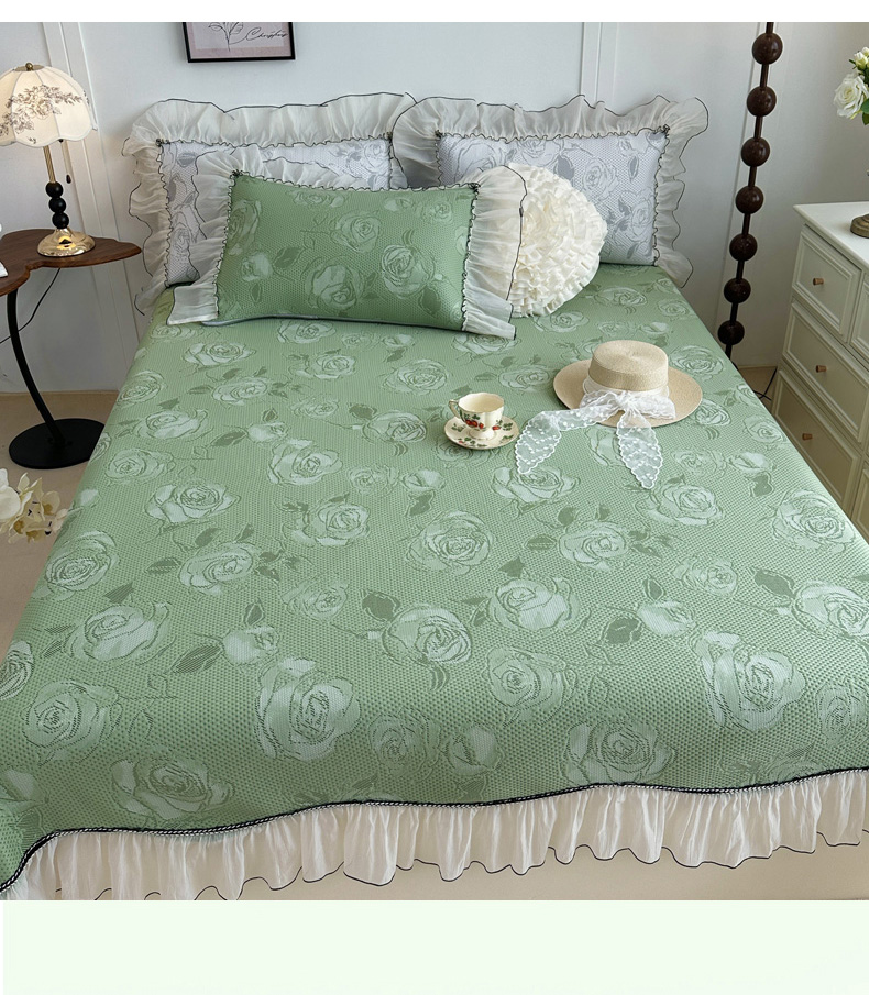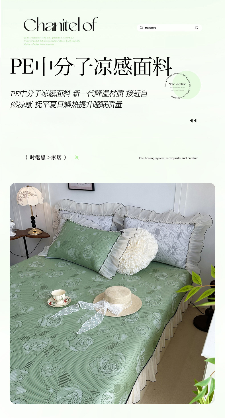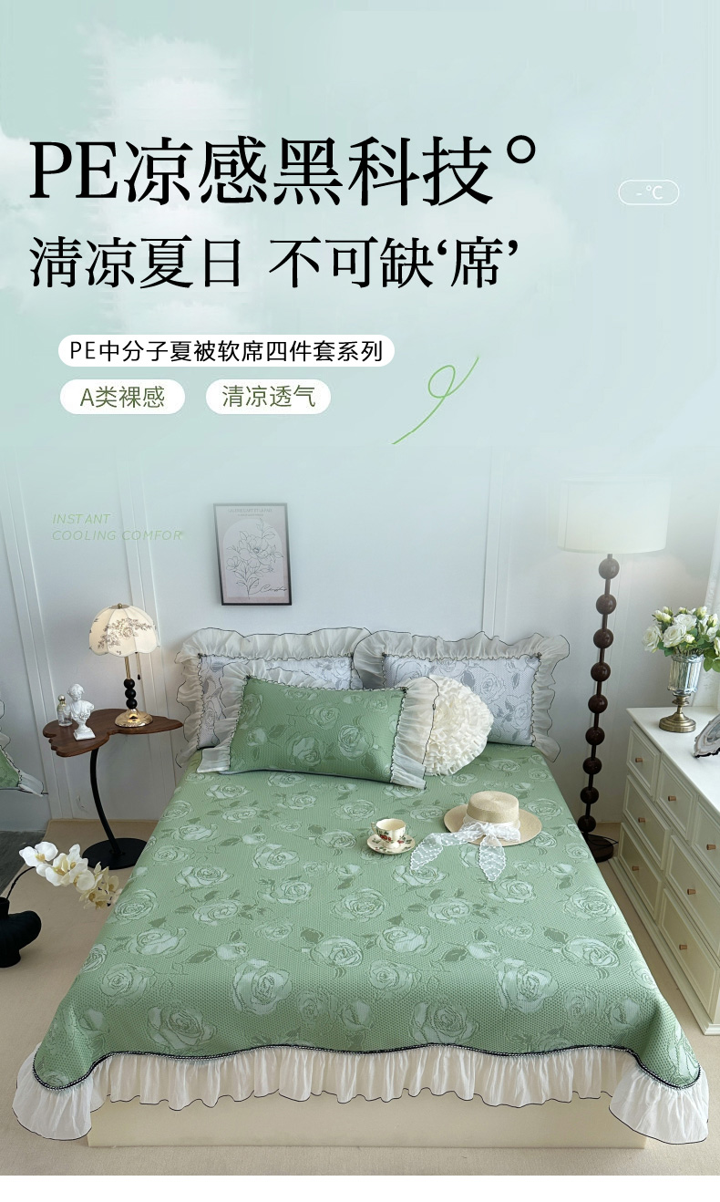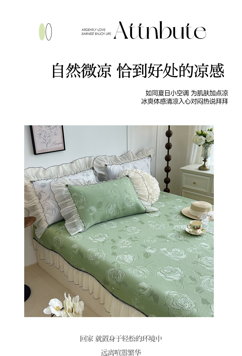 菊上家纺 2025新款PE中分子凉席-小香玫瑰系列 绿玫瑰