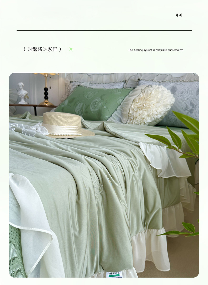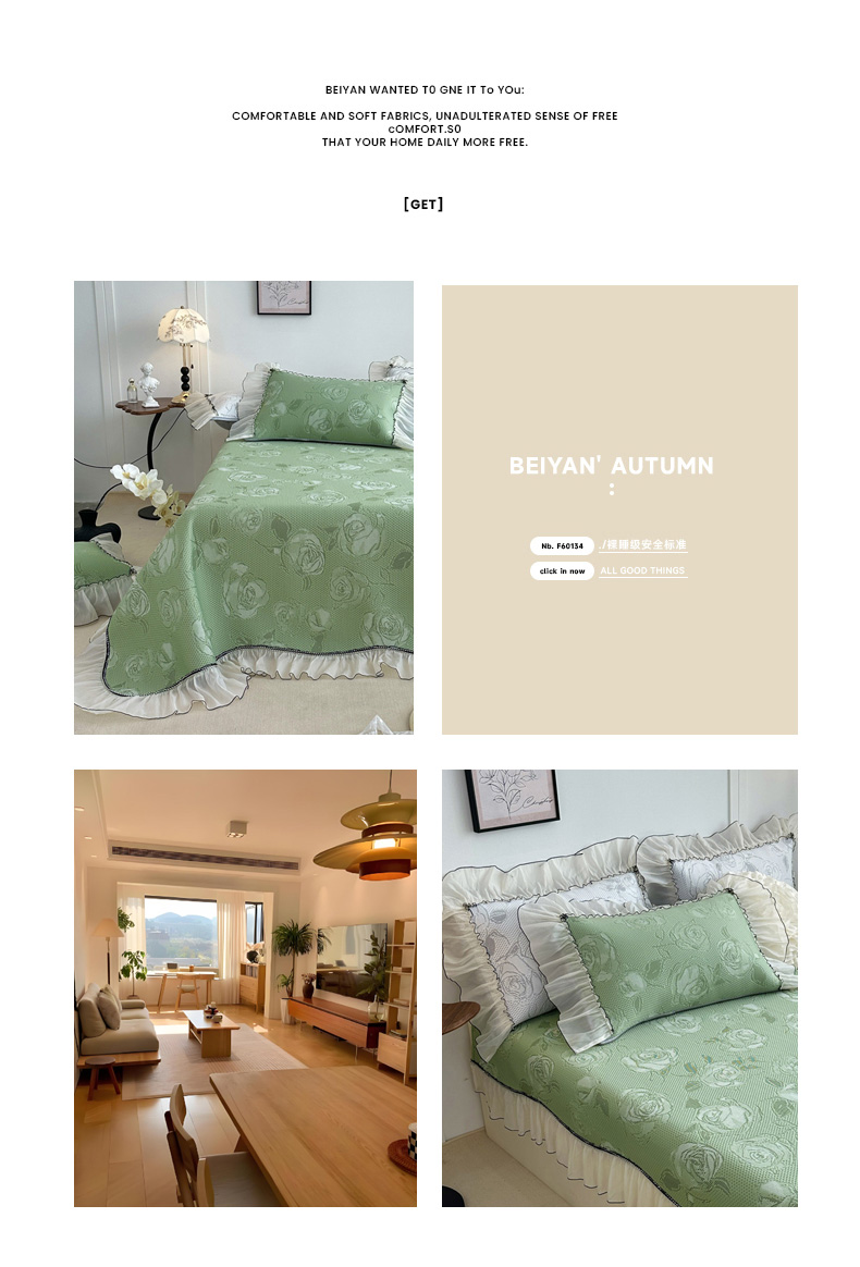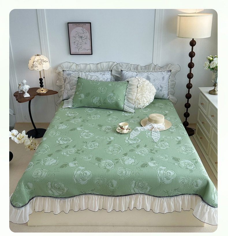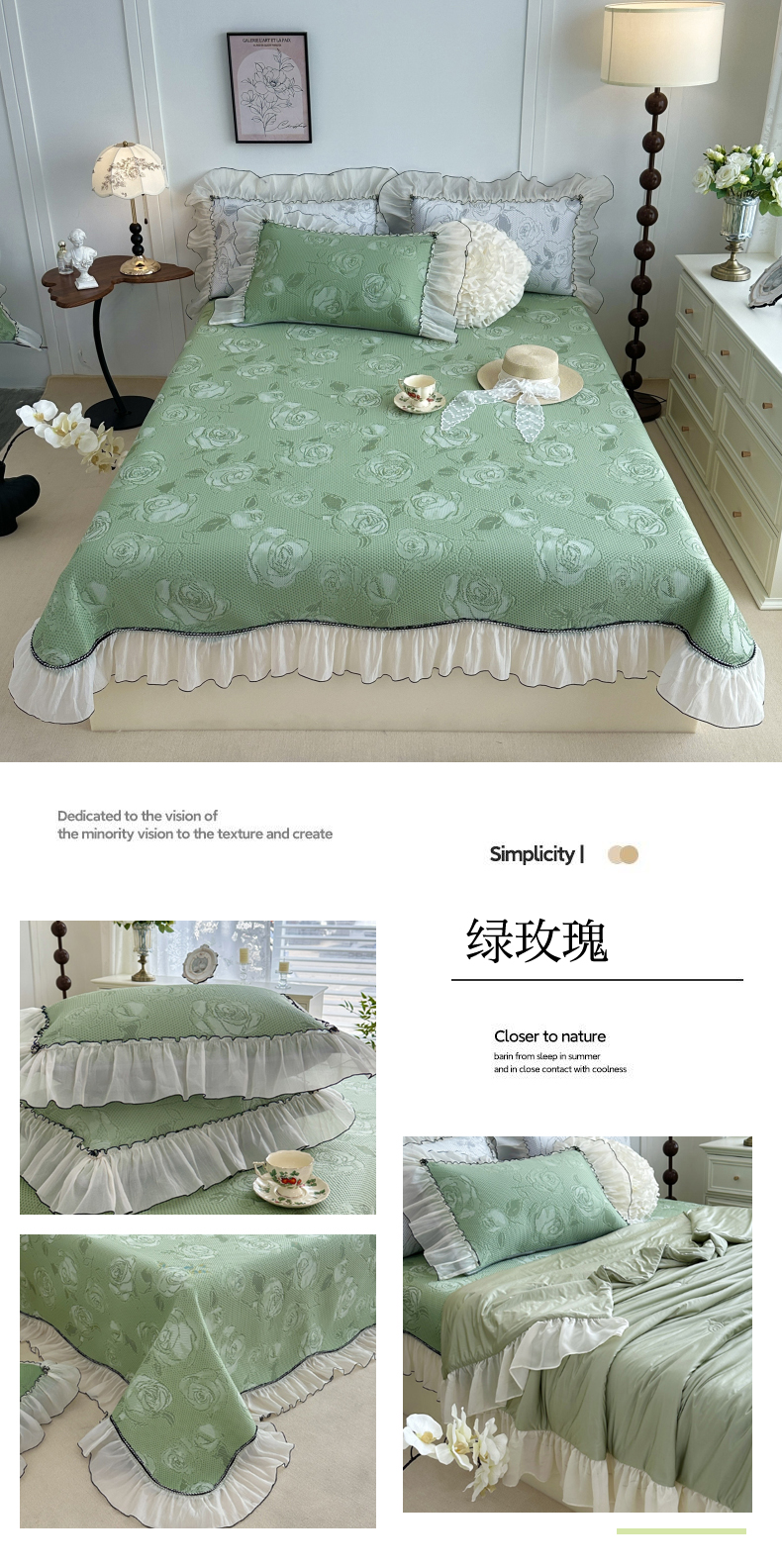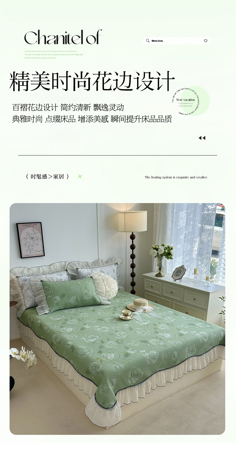 菊上家纺 2025新款PE中分子凉席-小香玫瑰系列 绿玫瑰