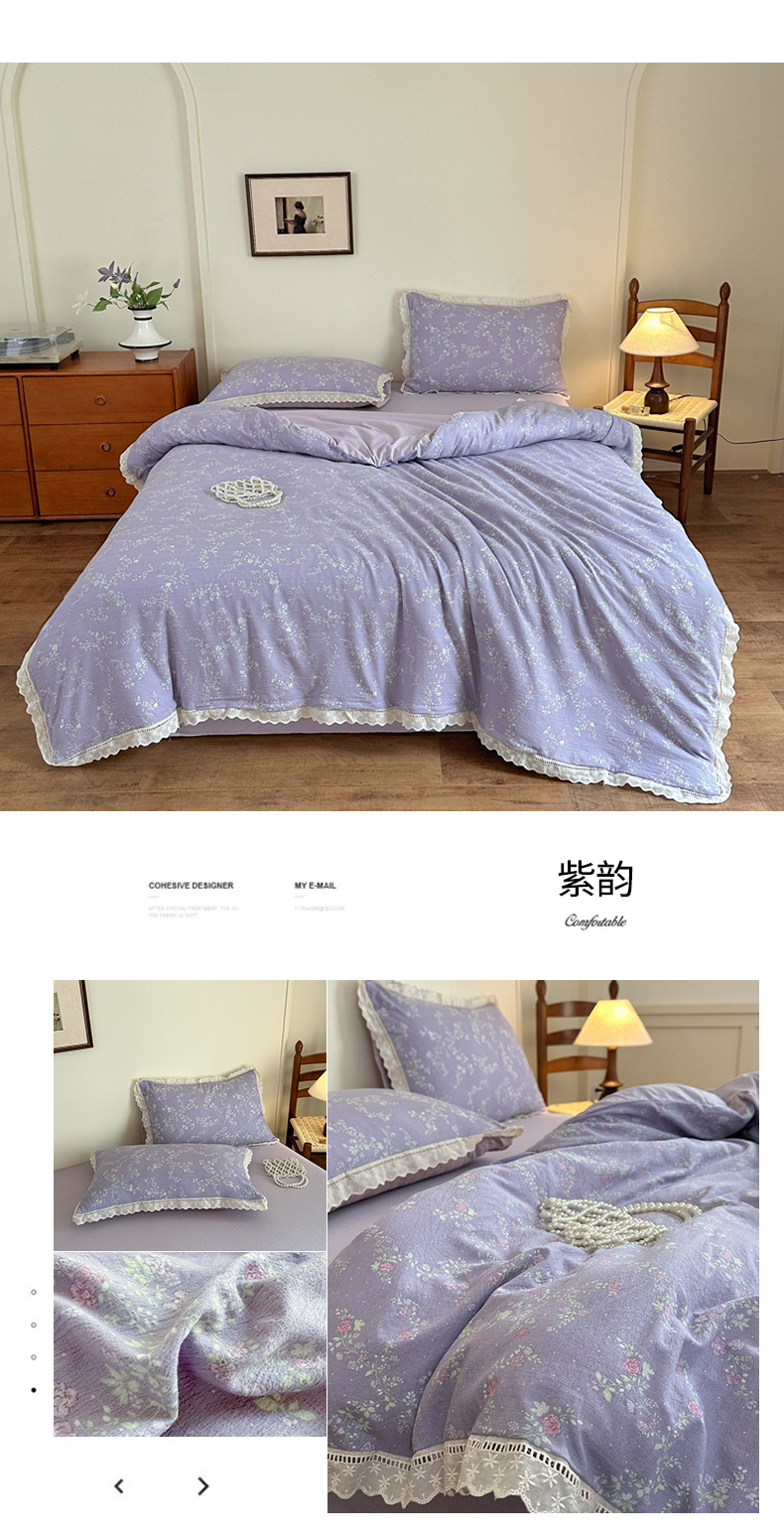 商品名称:一霖家纺 2025新款云感双层纱花边款四件套 紫韵