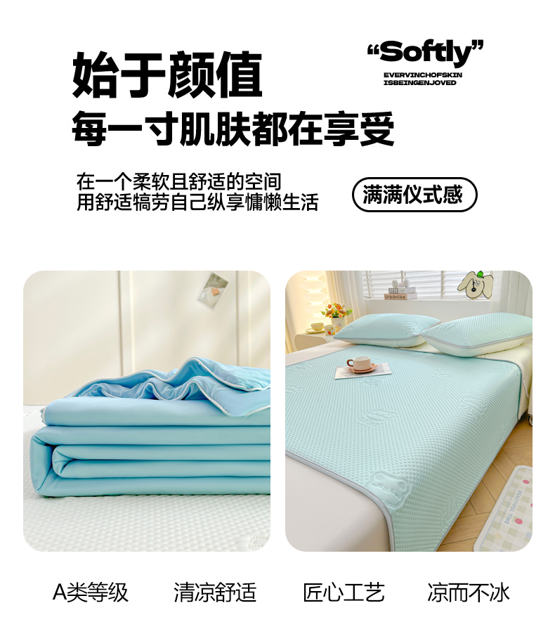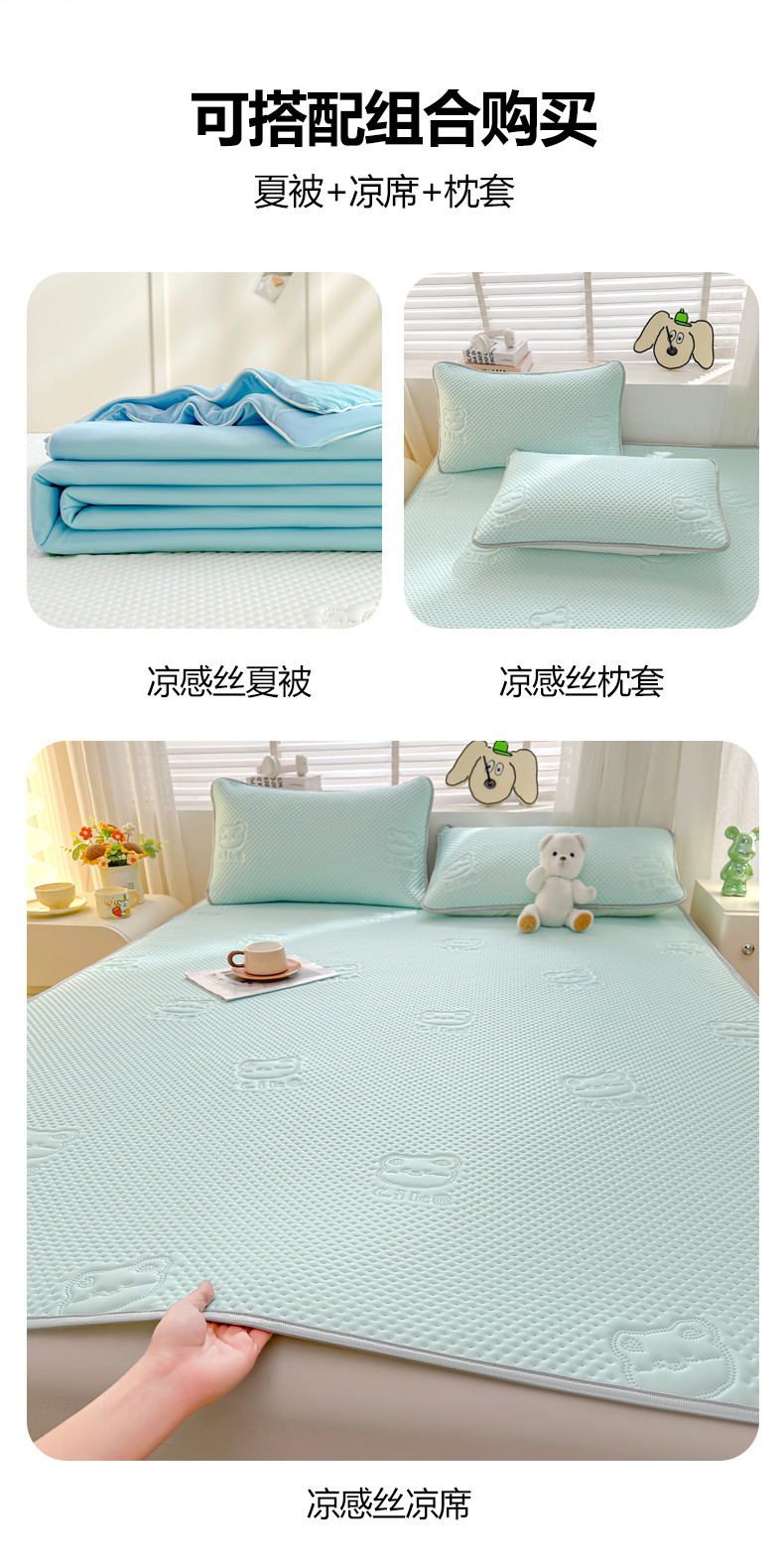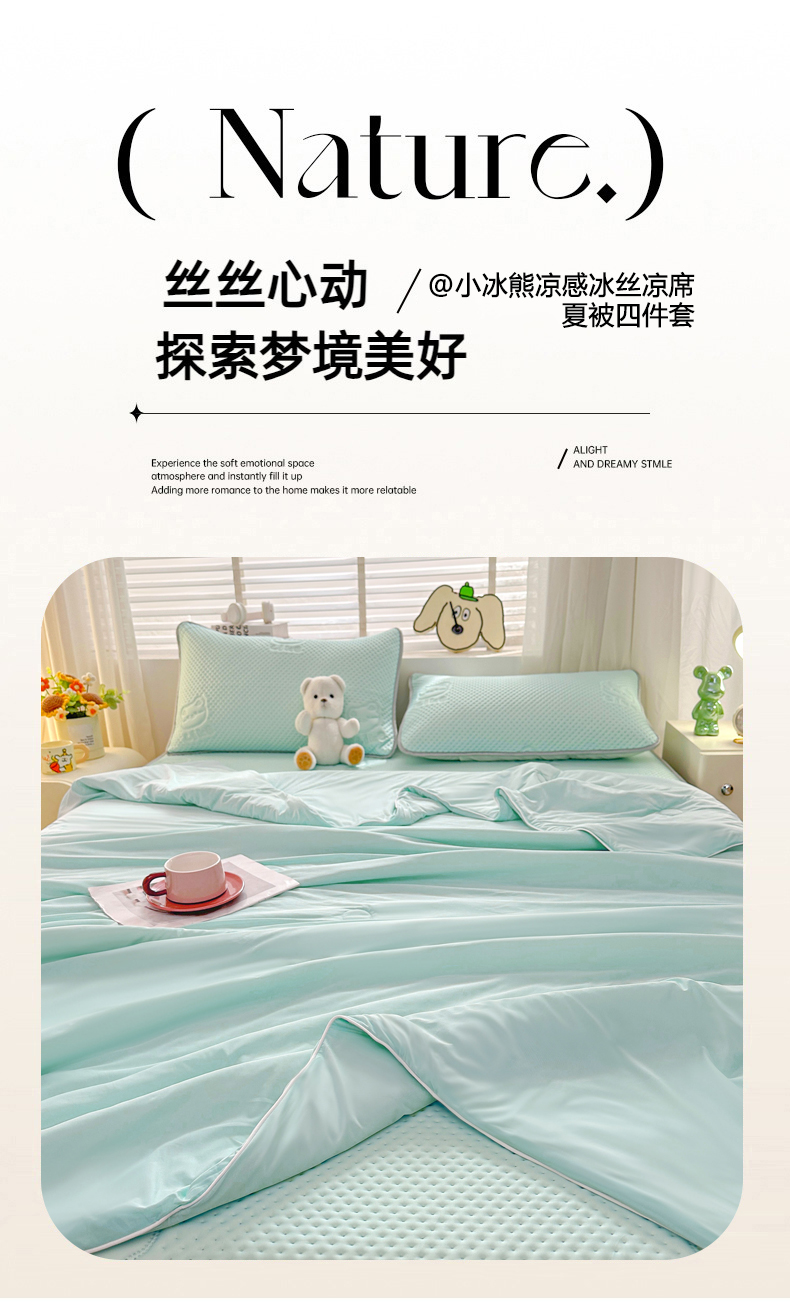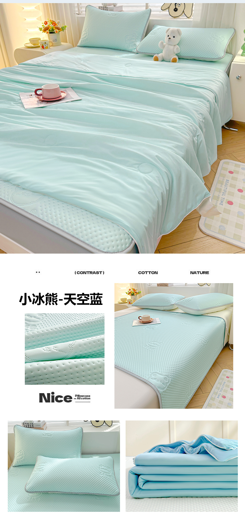 当前位置: 91家纺网 > 商品网购 > 床品套件 > 四件套 > 夏被四件套 > 慕木家纺 2025新款小冰熊凉感冰丝凉席夏被四件套 凉席款 天空蓝