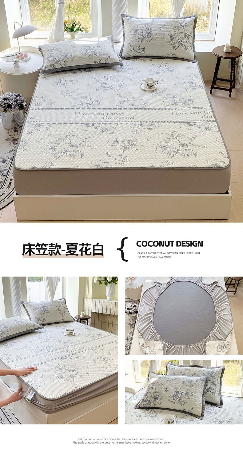 商品名称:宜家坊 2025新款A类PE中分子提花软凉席-花夏 床席款-夏花蓝