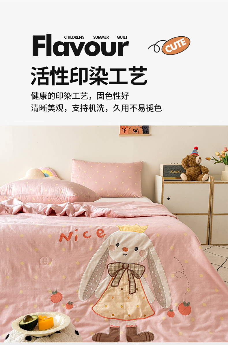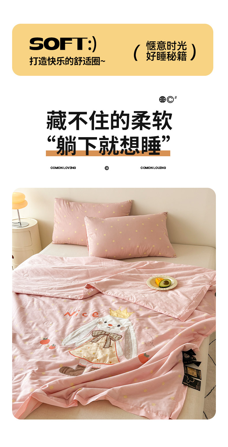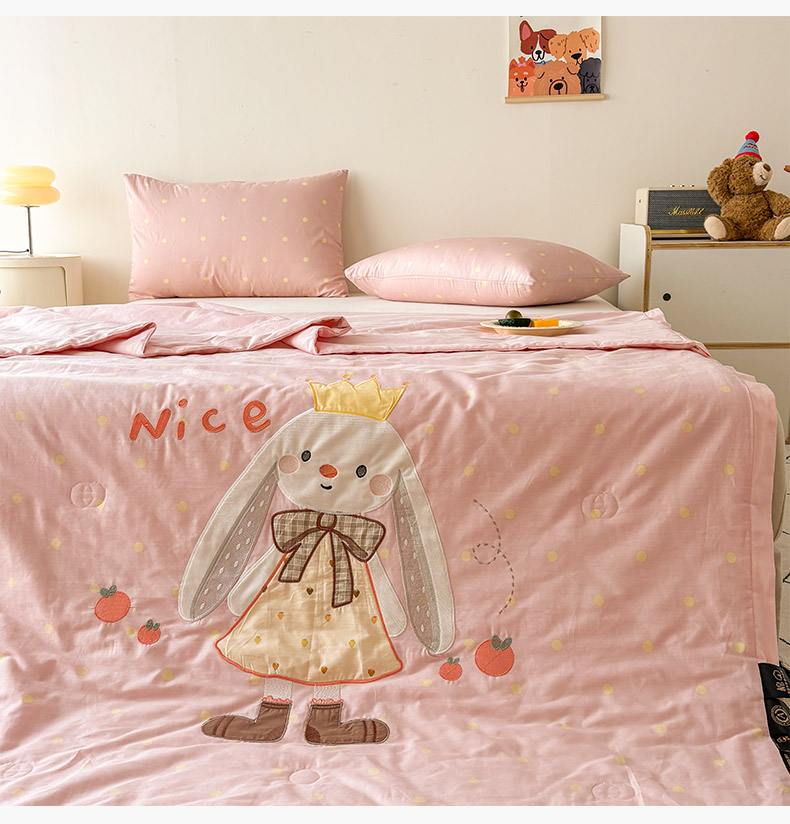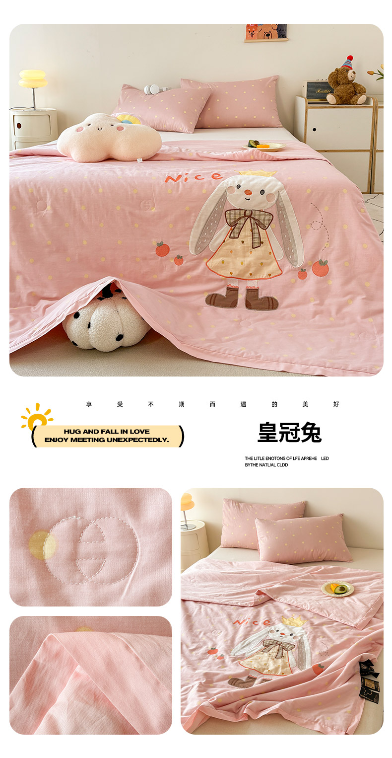 鸣升家纺 2025新款精梳全棉纯棉绣花夏被夏凉被空调被 皇冠兔