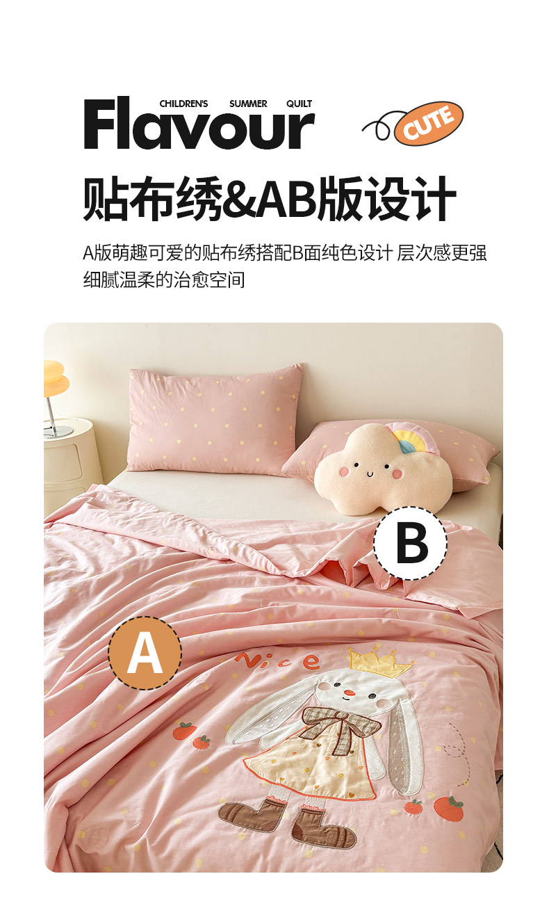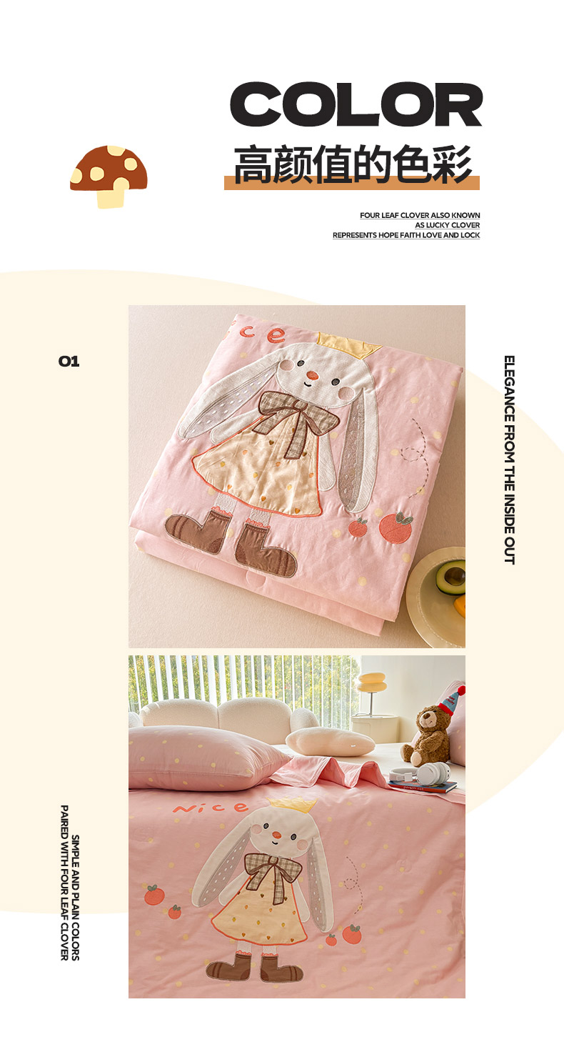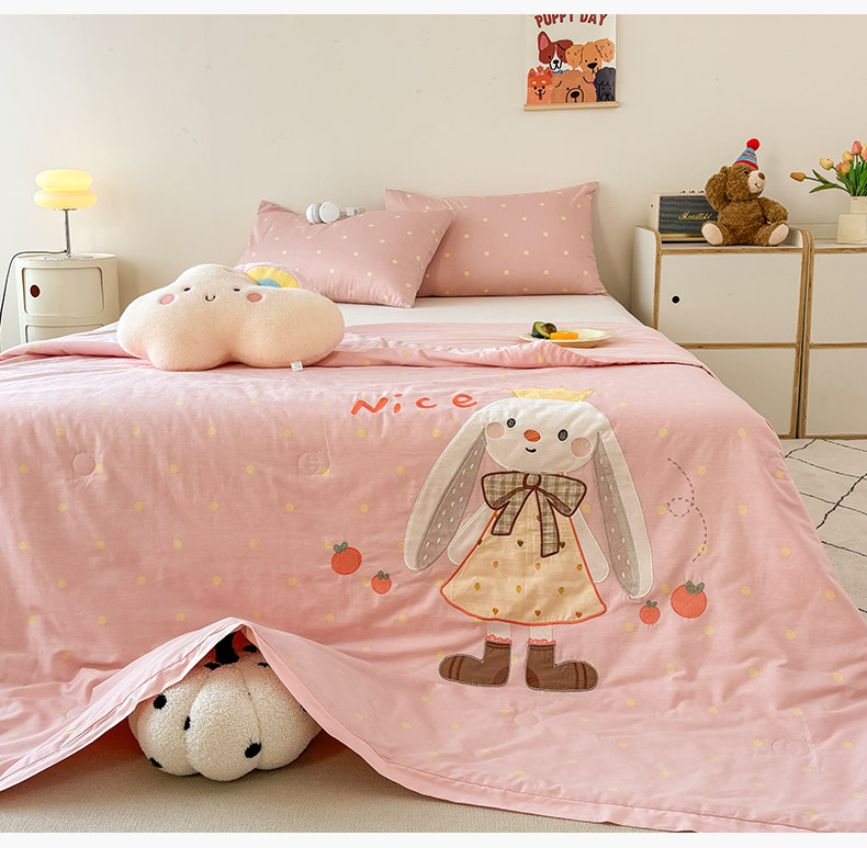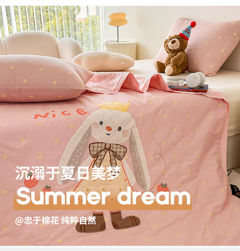 鸣升家纺 2025新款精梳全棉纯棉绣花夏被夏凉被空调被 皇冠兔
