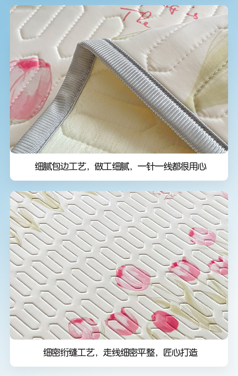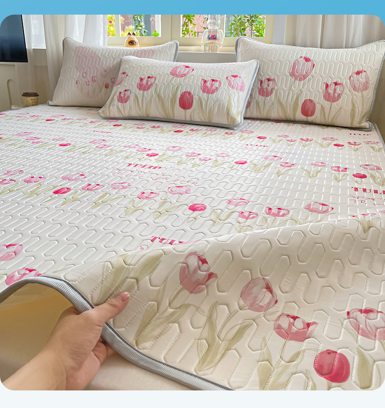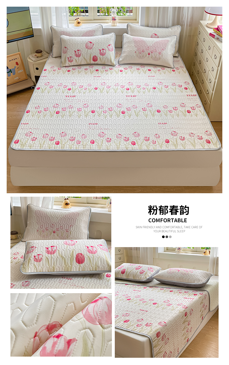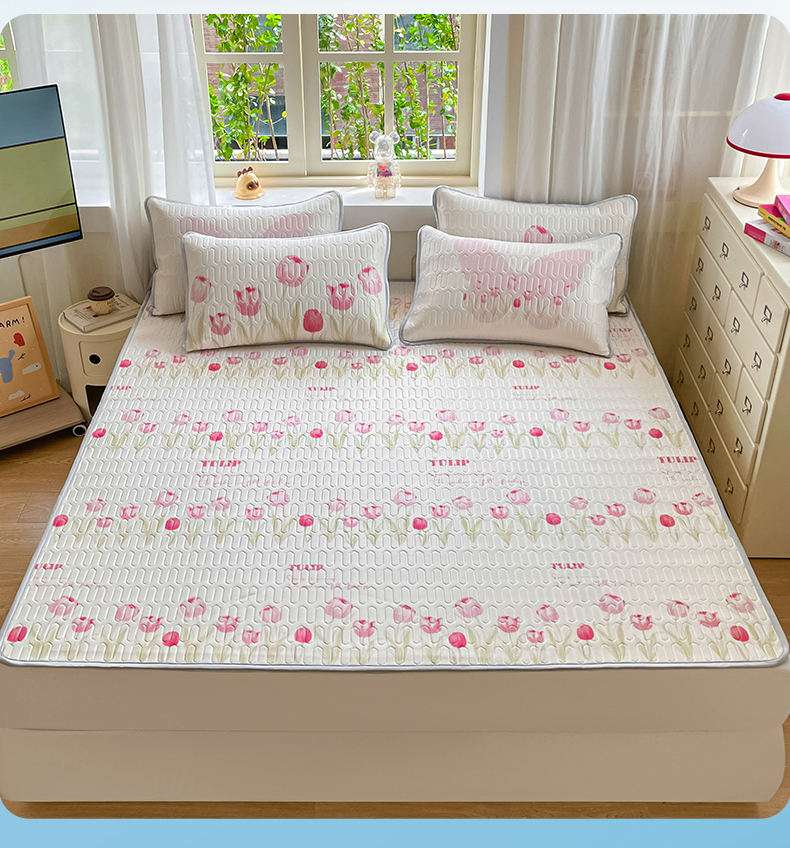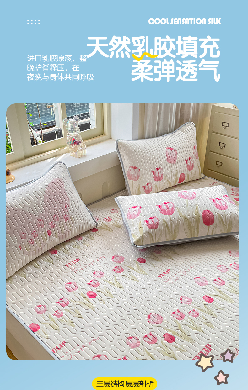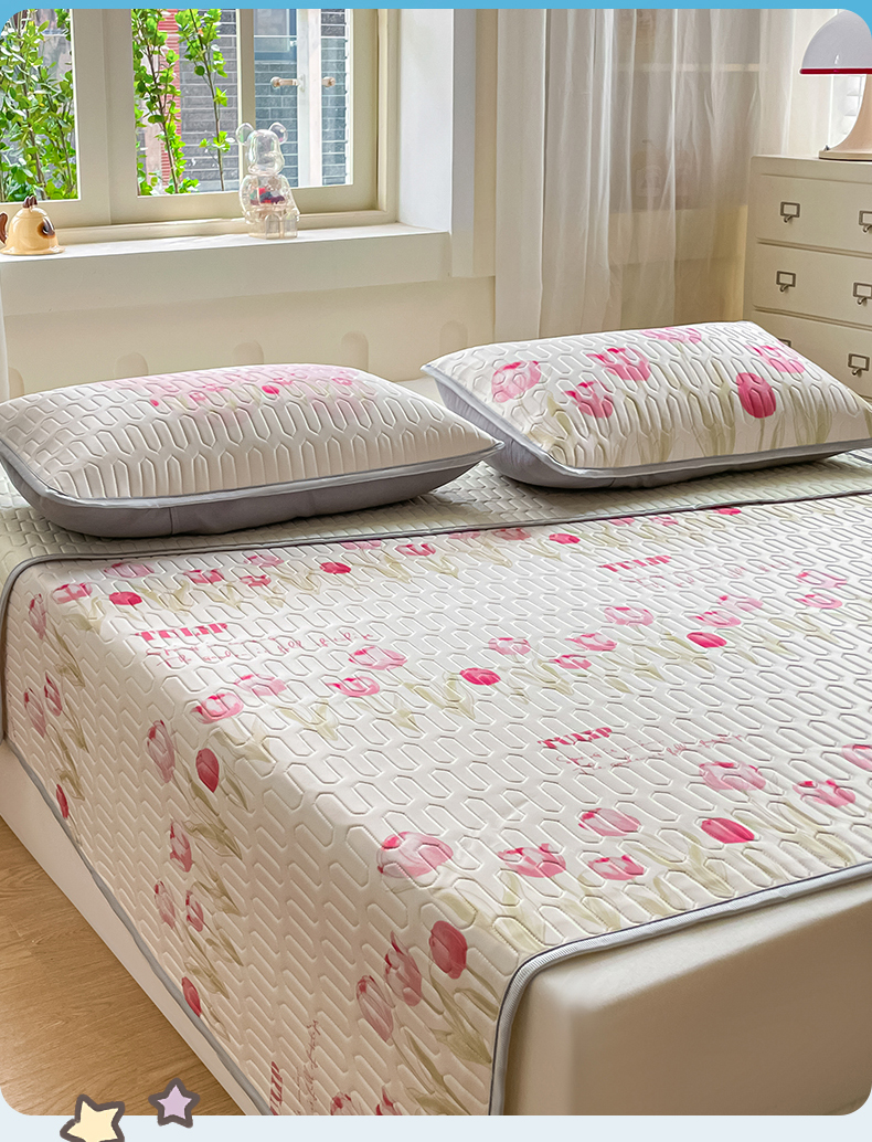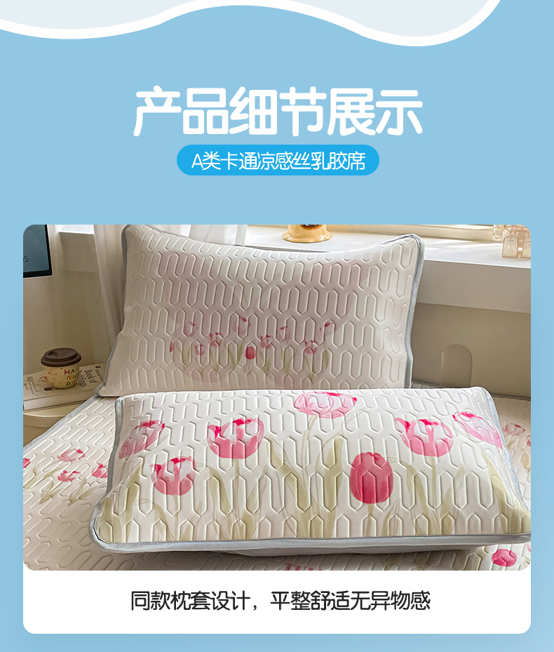 商品名称:布卢姆床垫 2025新款卡通A类大版数码凉感丝乳胶凉席 粉郁春韵