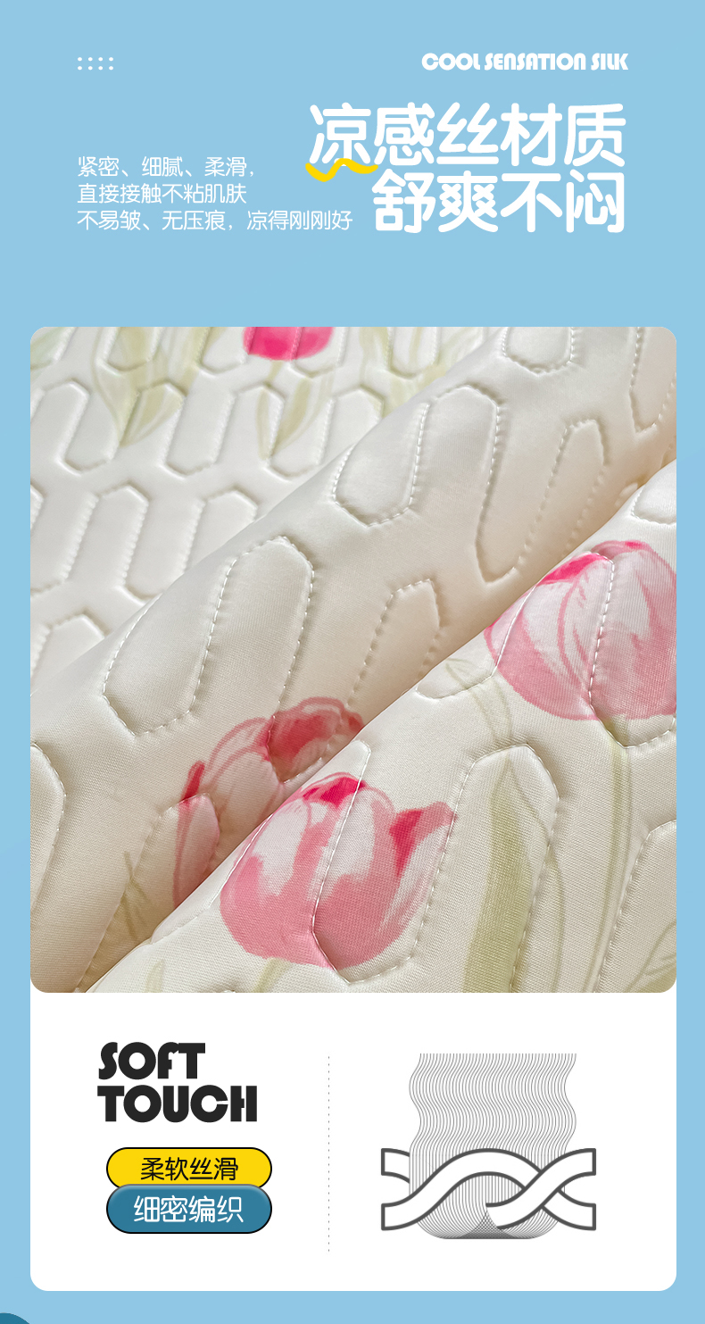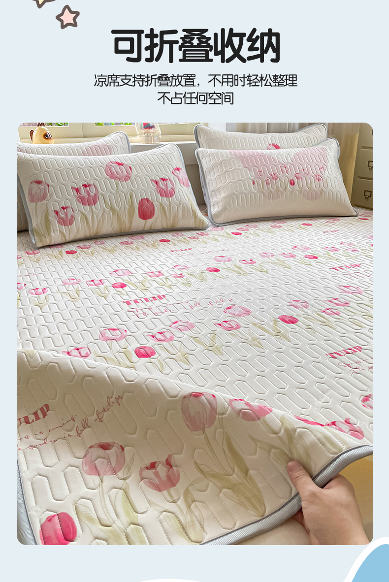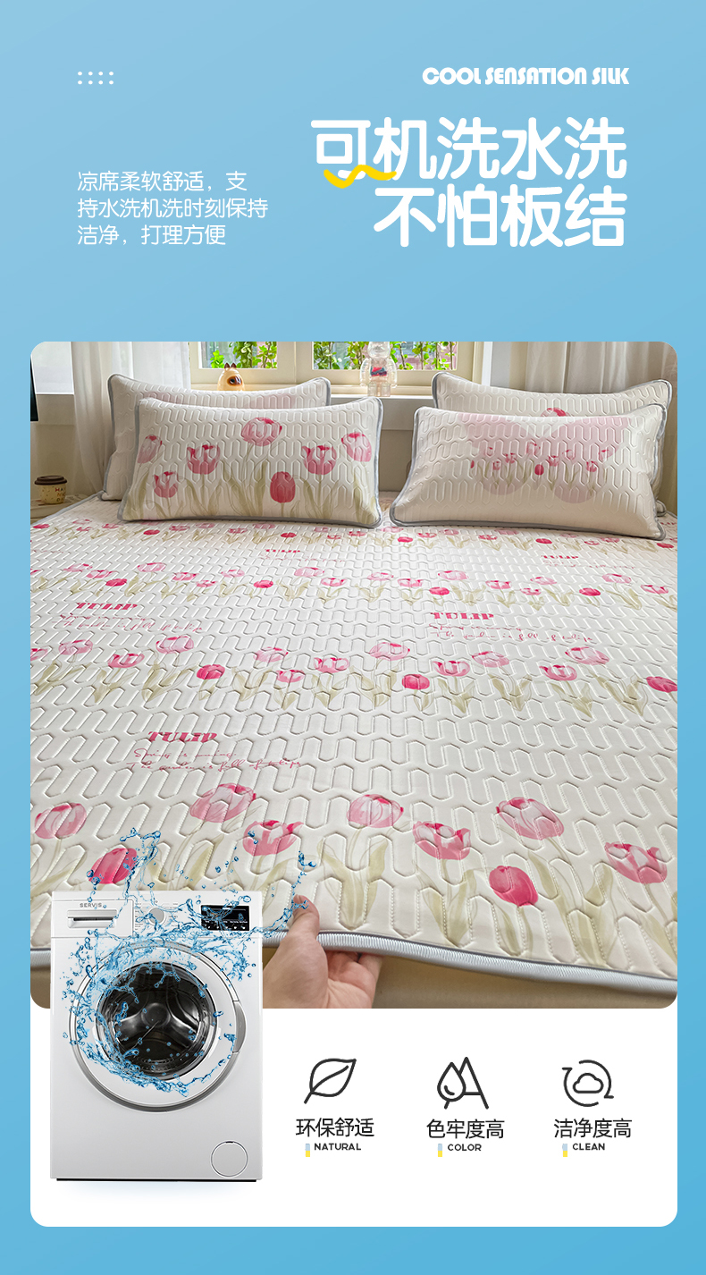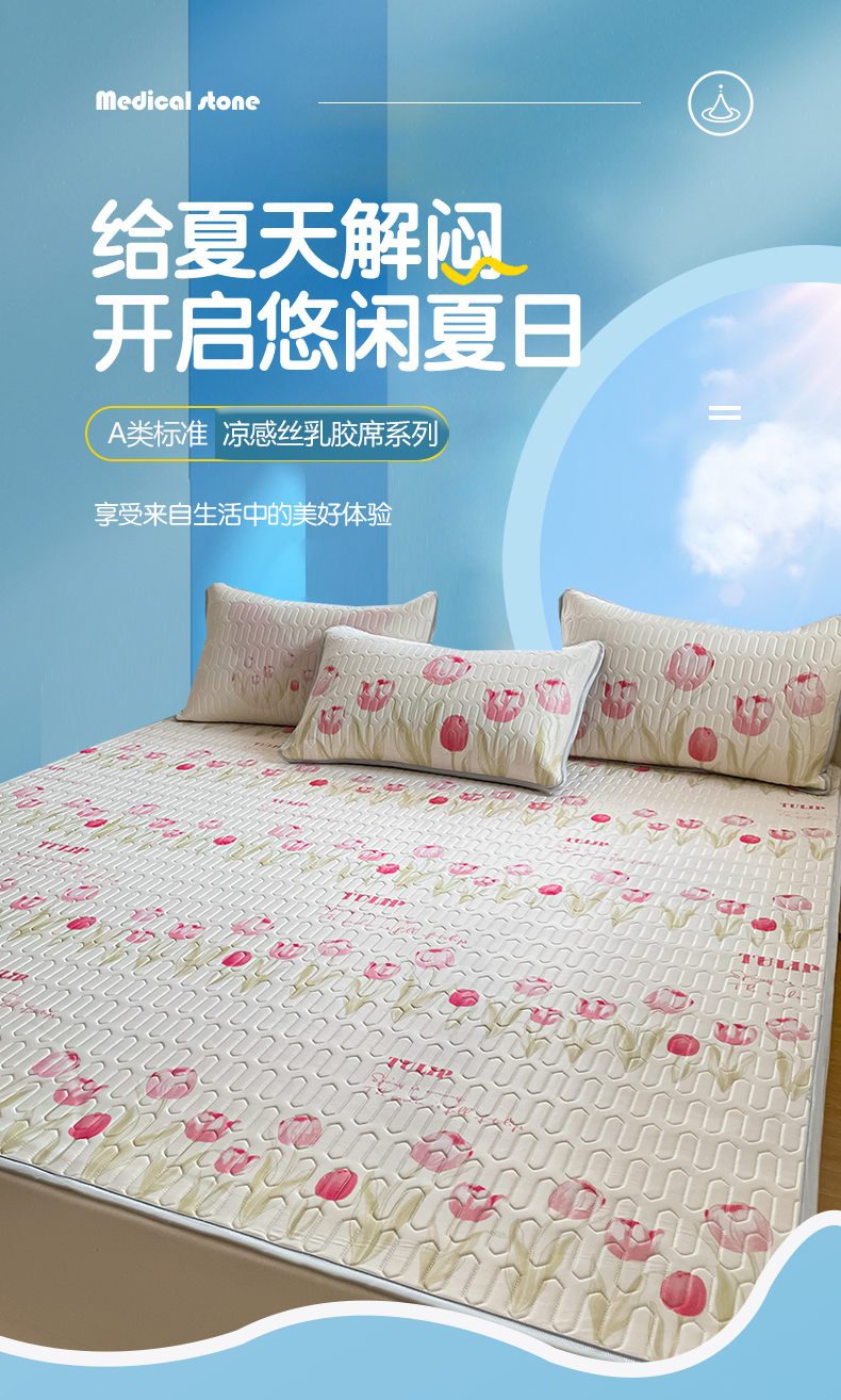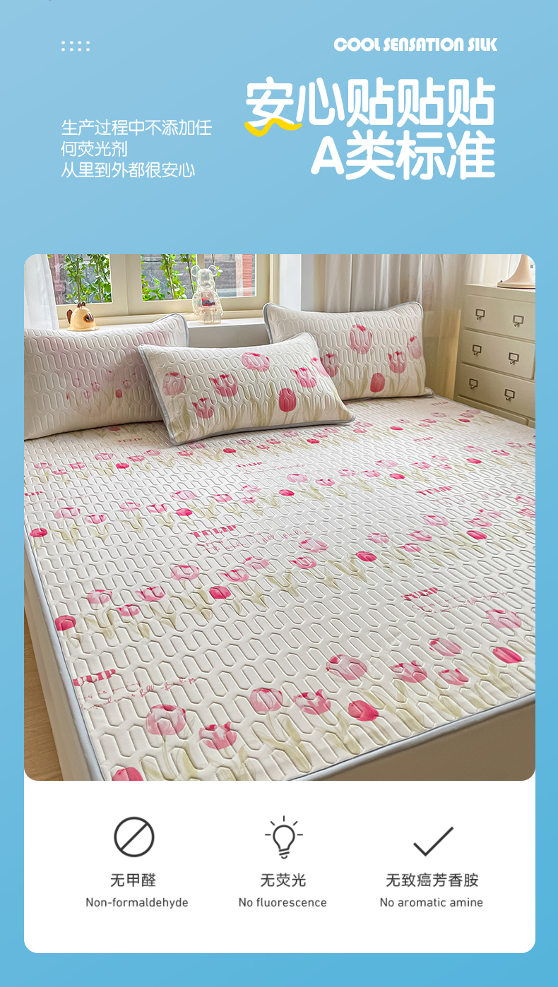 商品名称:布卢姆床垫 2025新款卡通A类大版数码凉感丝乳胶凉席 粉郁春韵