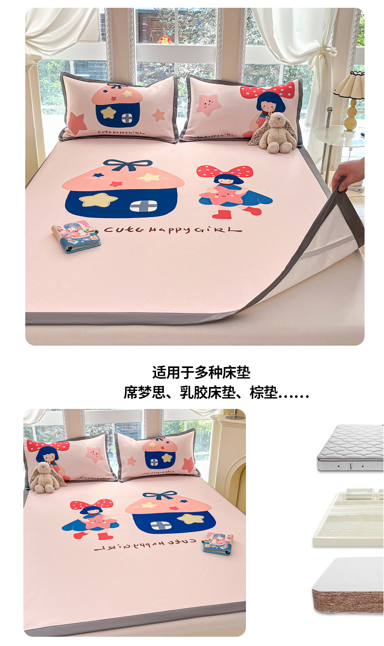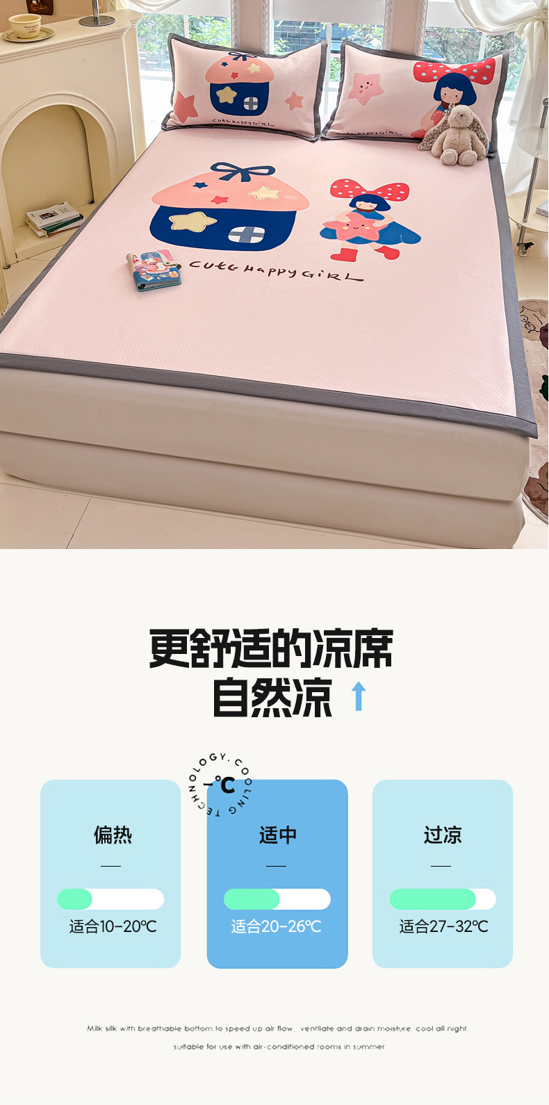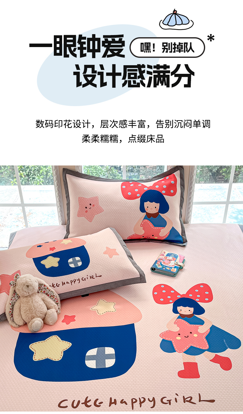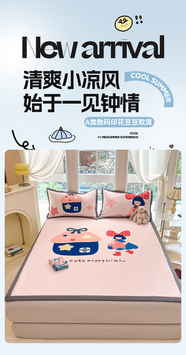 商品名称:Sweet dreams甜梦 2025新款数码印花凉感豆豆软席凉席席子系列-大版 蘑菇小姑娘