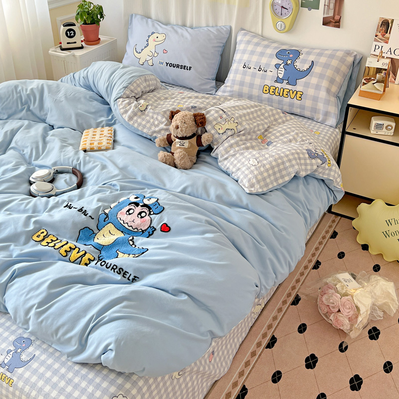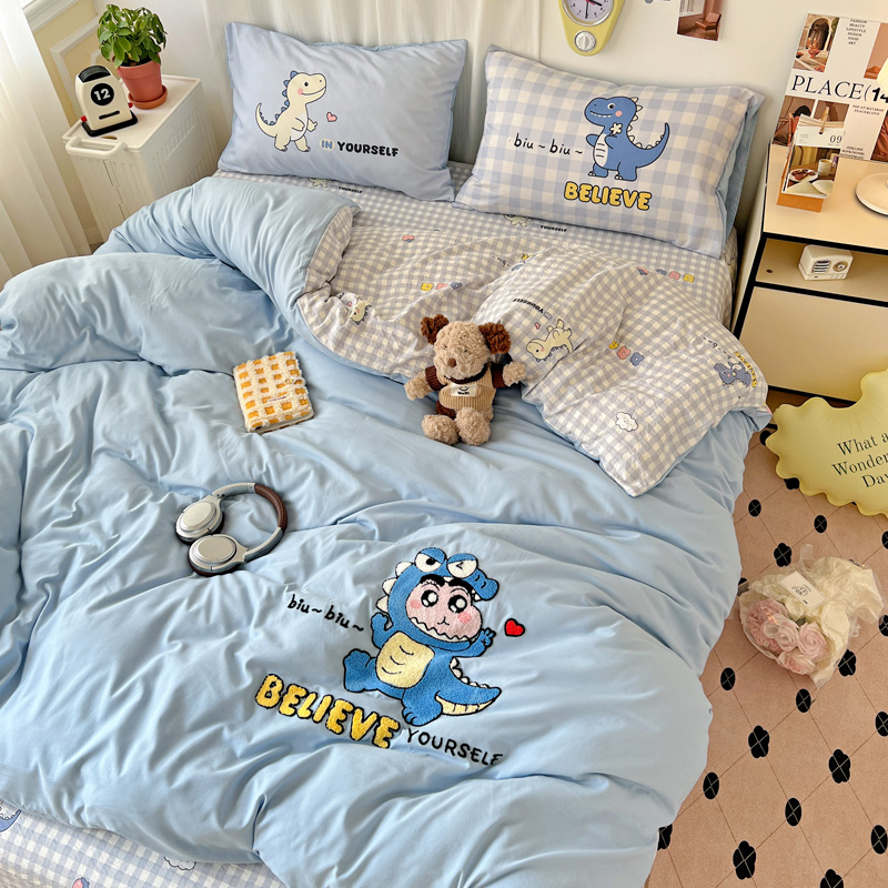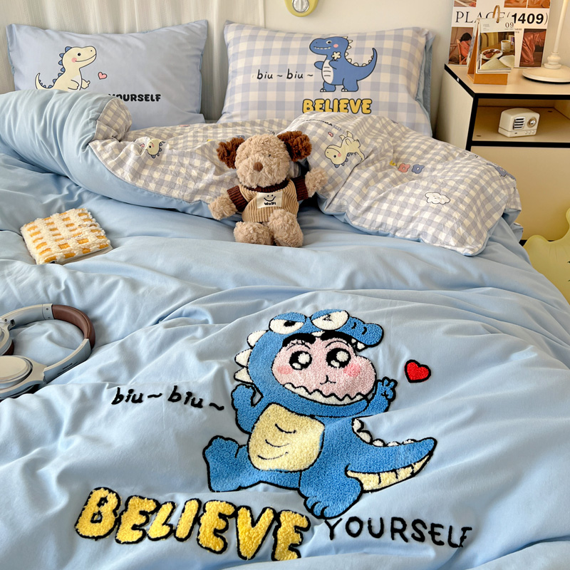 一霖家纺 2025新款高克重云朵棉数码印花+毛巾绣四件套 魔法恐龙