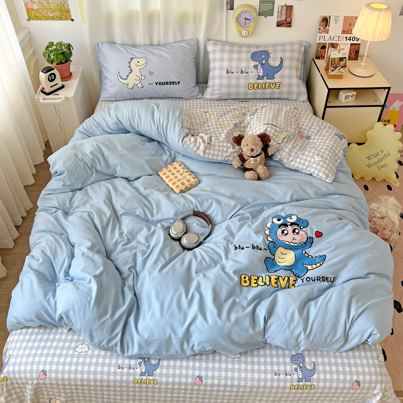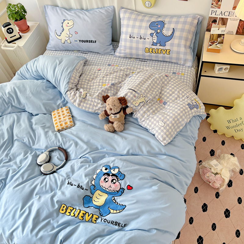 商品名称:一霖家纺 2025新款高克重云朵棉数码印花+毛巾绣四件套 魔法恐龙