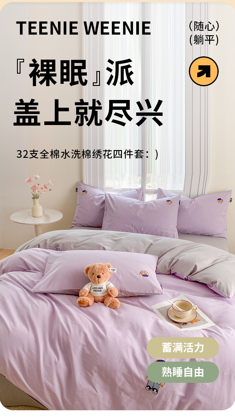 当前位置: 91家纺网 > 商品网购 > 床品套件 > 四件套 > 水洗棉四件套 > 泰迪爱兰Teddy ISLAND 2026新款32支全棉水洗棉绣花三件套四件套 浅雪青+青灰