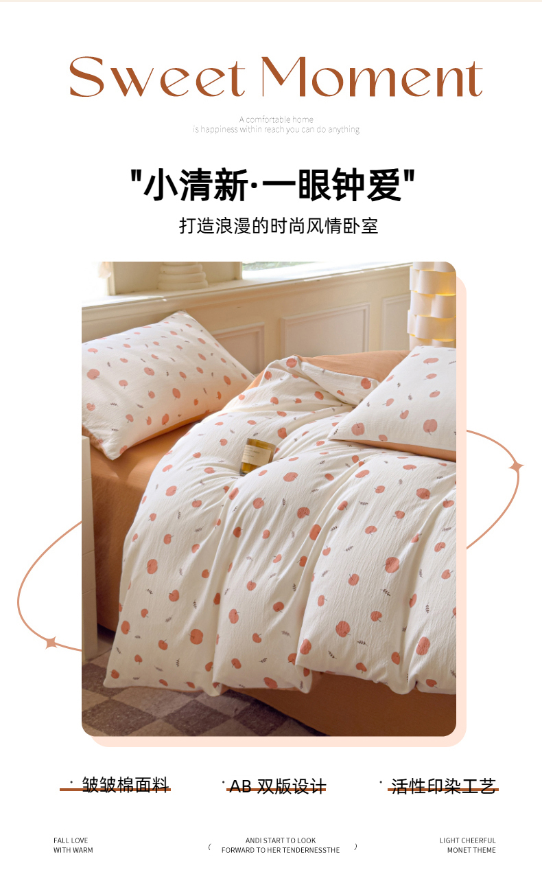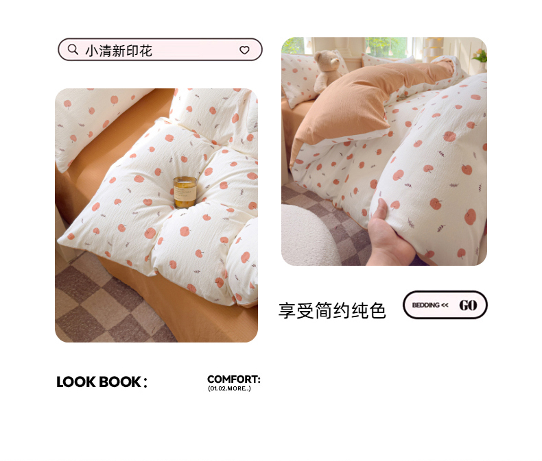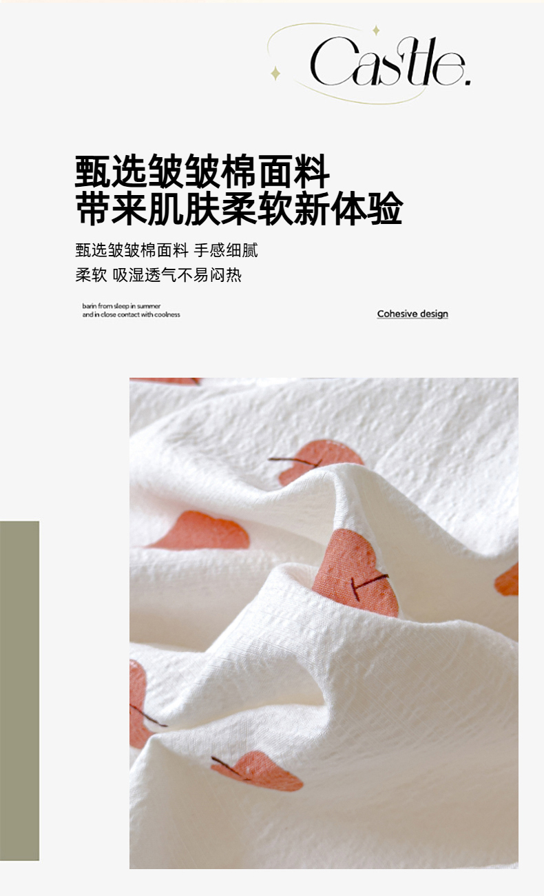 当前位置: 91家纺网 > 商品网购 > 床品套件 > 四件套 > 其它四件套 > 蓝淋家纺 2025新款亲肤舒适皱皱棉印花四件套 夏日甜果
