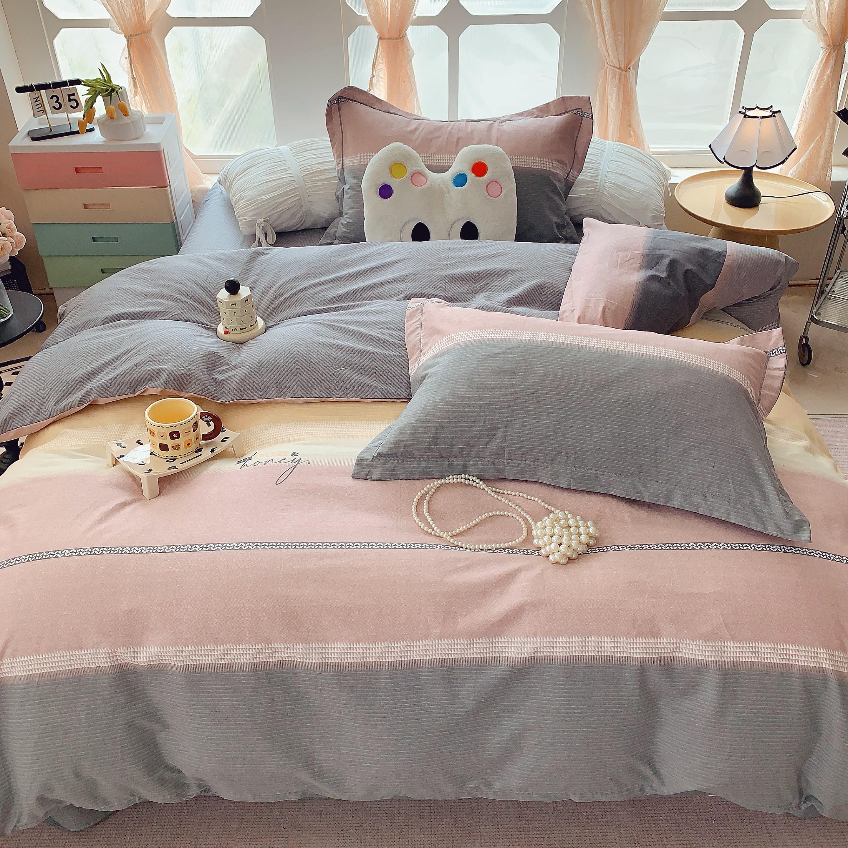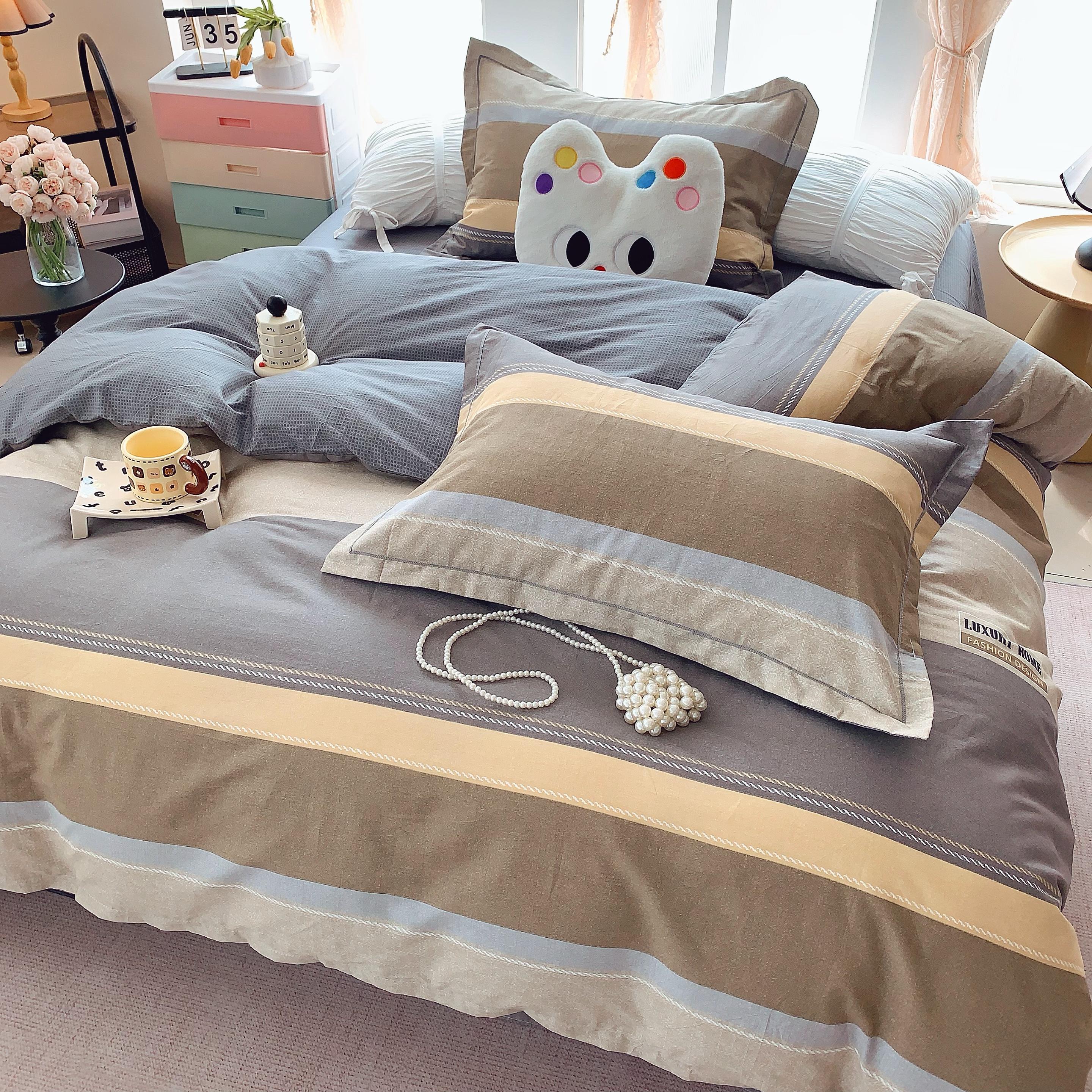 (总)莱豫家纺 2025新款小清新全棉纯棉四件套,爱心豹纹,白薇,春黛,芳华,锦绣咖,锦绣米,可爱狗狗咖,太空超人,甜橘,童年,仙本娜,小飞马,小小花园,星星人黄,星星人蓝,雅蔓