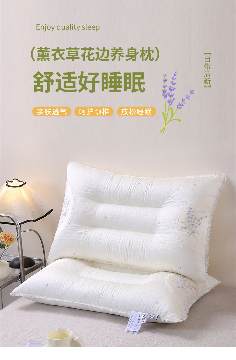当前位置: 91家纺网 > 商品网购 > 枕头/枕芯/保健枕/颈椎枕 > 天意美枕芯 2025新款薰衣草花边养身枕枕头枕芯 薰衣草花边养身枕-嫩粉 48*74cm/只