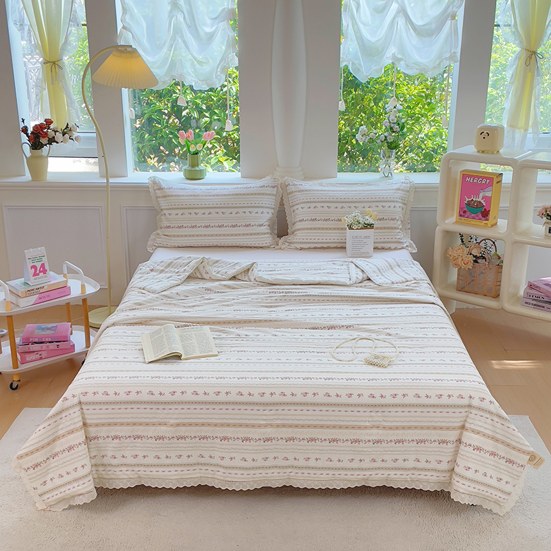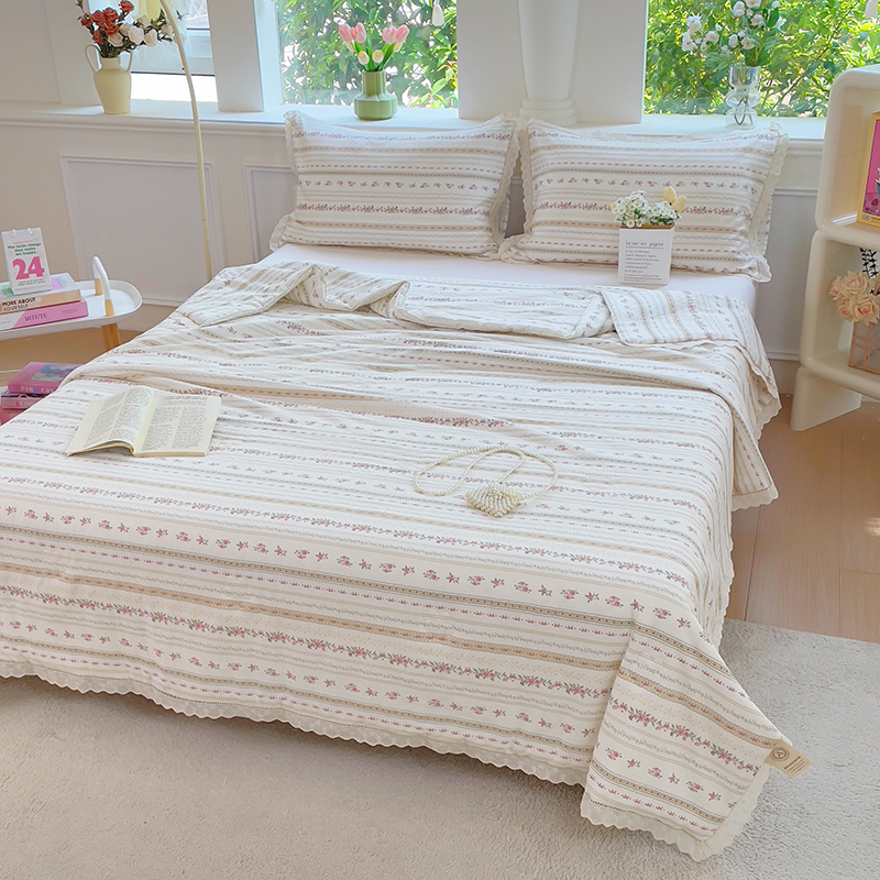 (总)集布 2025新款100%全棉双层纱花边款夏被夏凉被,初夏,赫拉,奶油小兔,苏黎世,紫草藤,梦华录,甜心,素影繁花蓝