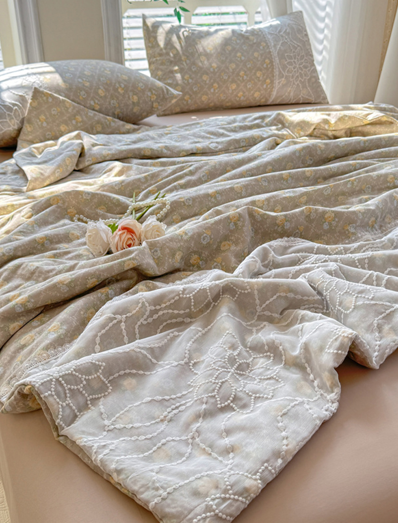 • 91家纺网 家纺一手货源 找家纺 眠博士 2025新款双层纱印花雪纺夏被  雪纺夏被-涟漪