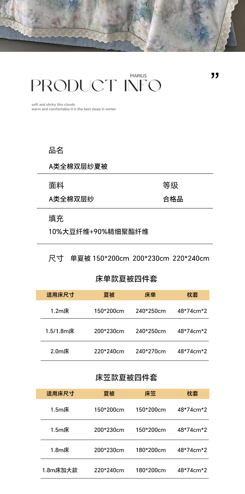 • 适用季节: 空调被/夏凉被