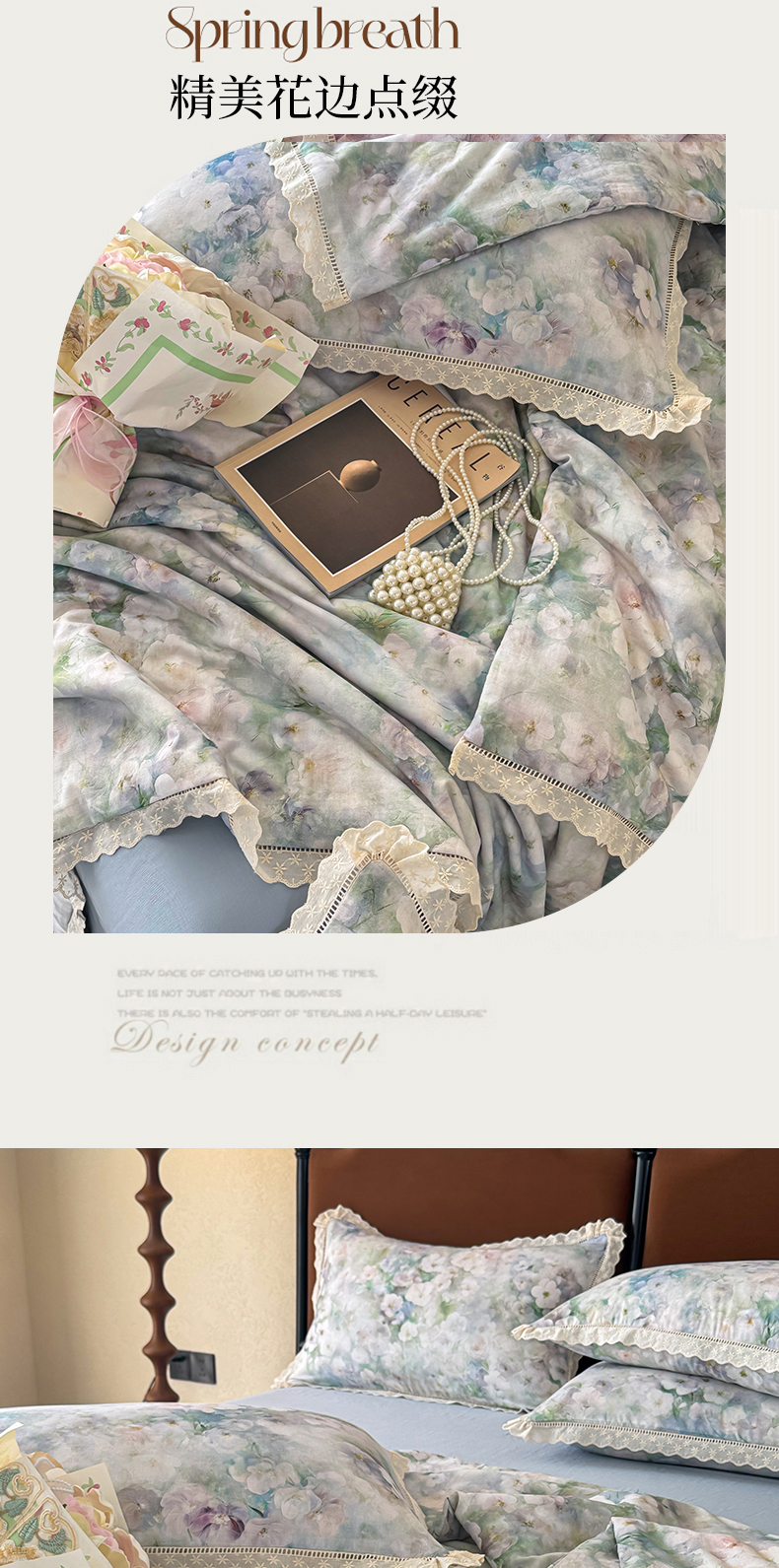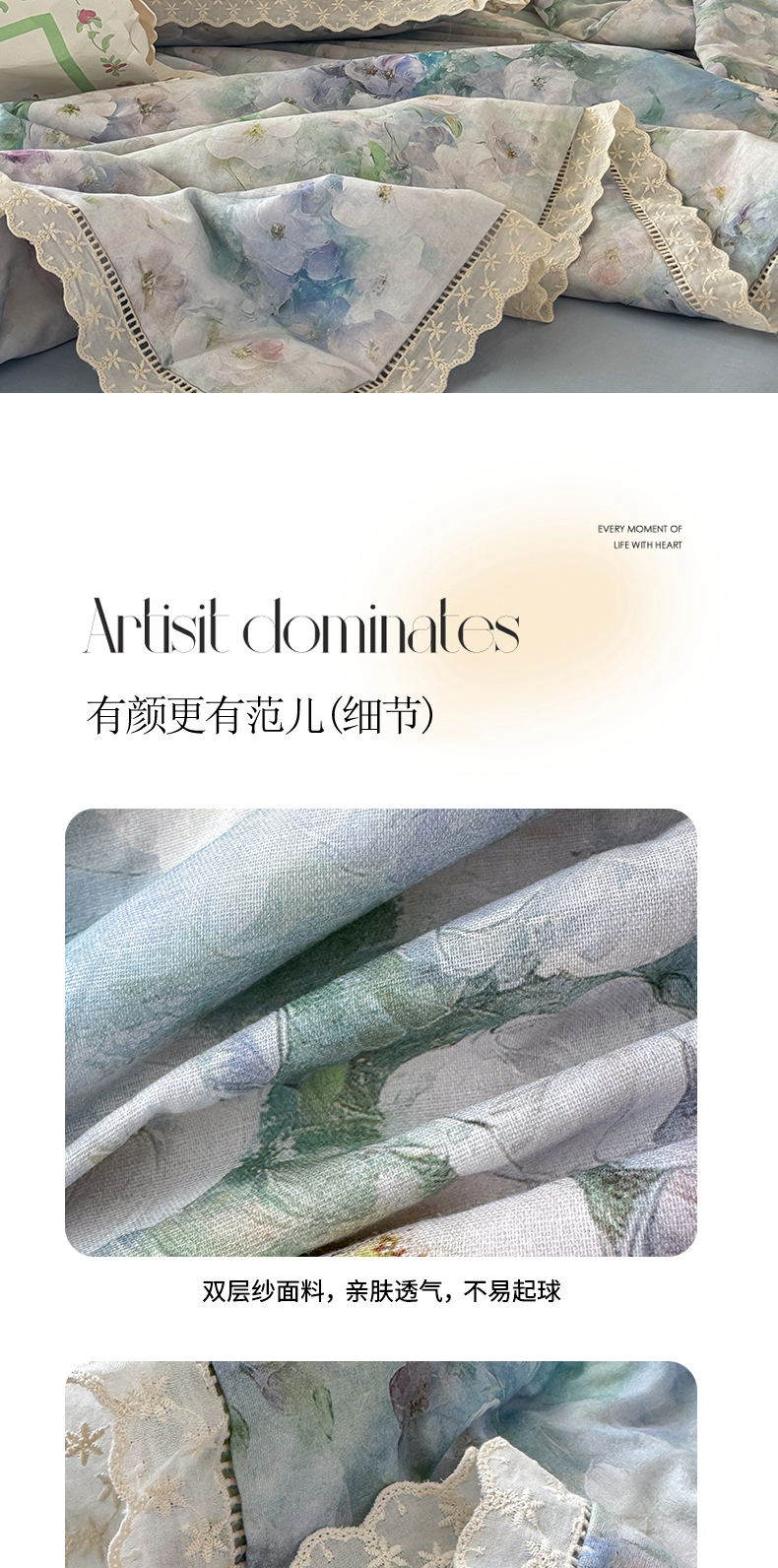 眠博士2025新款双层纱印花法式花边夏被 夏被-花曲里(蓝)