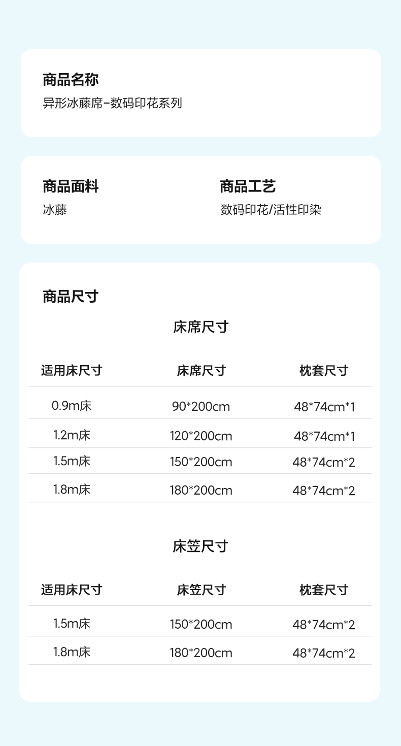 商品名称:澳萝拉 2025新款异形冰藤席数码印花系列席子凉席-风格二 喜欢你(床席款)