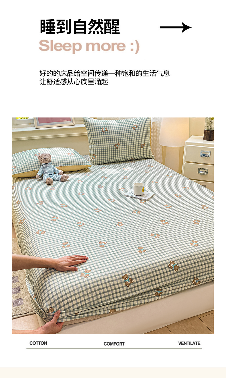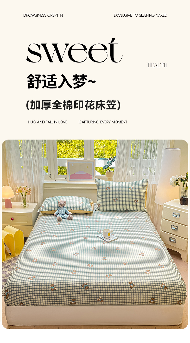 商品名称:黑马家居 2025新款全棉纯棉印花单床笠床笠单件 格雷小熊