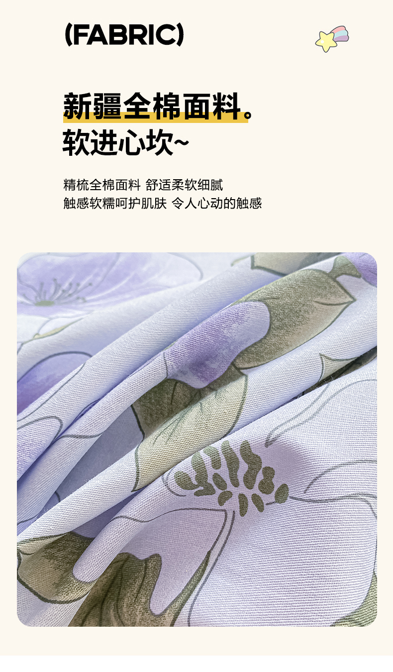 黑马家居2023新款全棉印花喷气12868套件-单被套 七色花语,七色花语