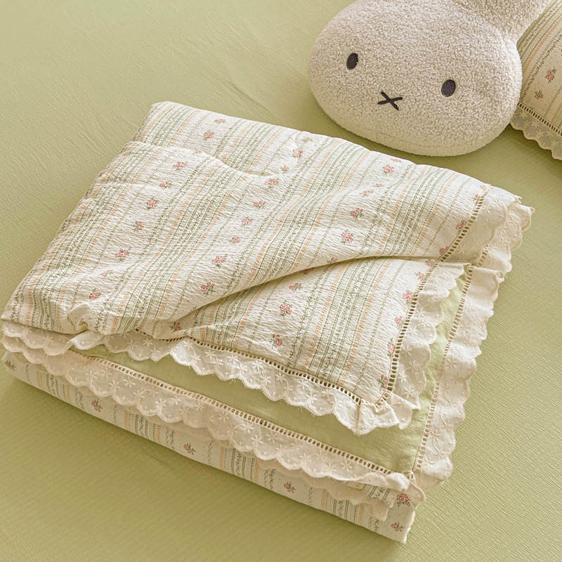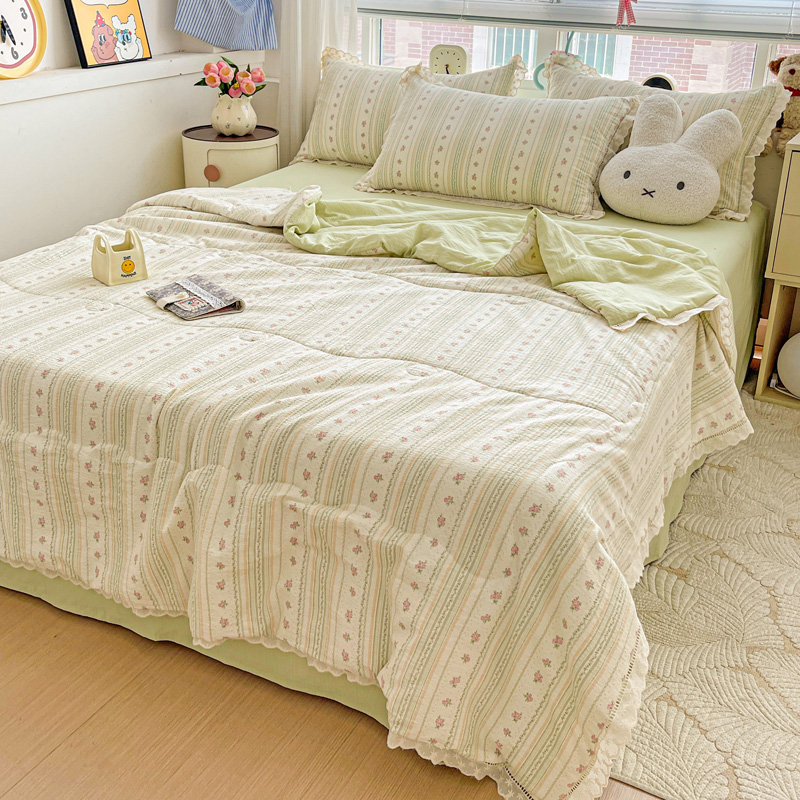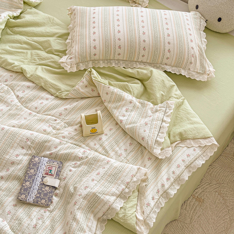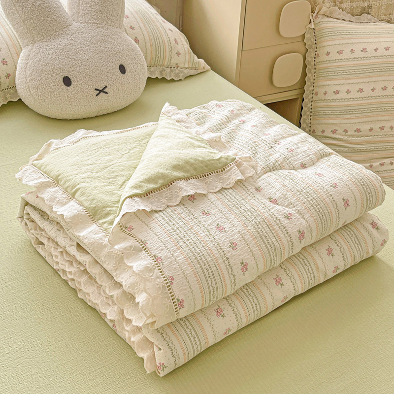 当前位置: 91家纺网 > 商品网购 > 床品套件 > 四件套 > 夏被四件套 > 恋之语 2025春夏新款云感全棉纯棉花边款夏被夏凉被空调被四件套套件 白茶绿