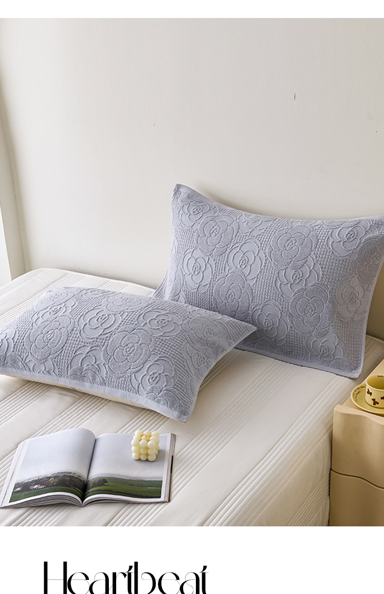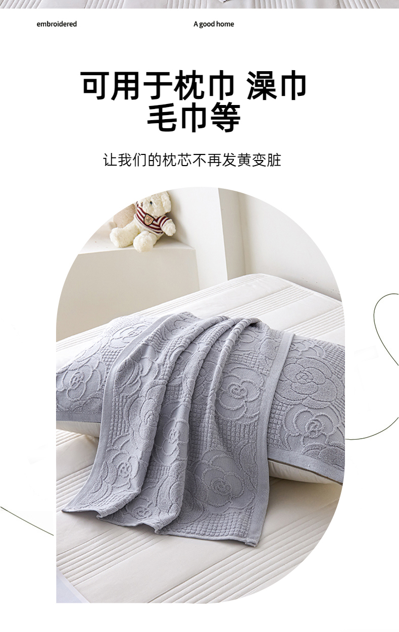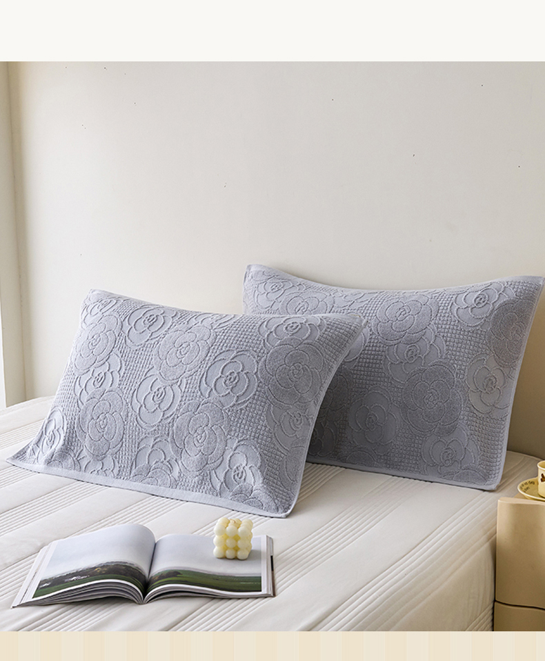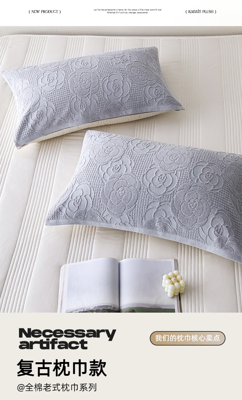 商品名称:悦然毛巾被 2025新款全棉纯棉老式枕巾毛圈款 玫瑰物语浅灰