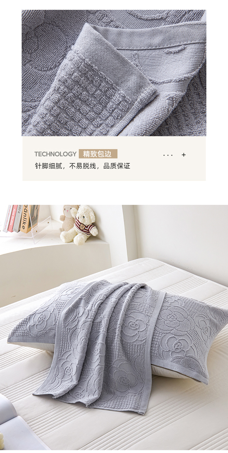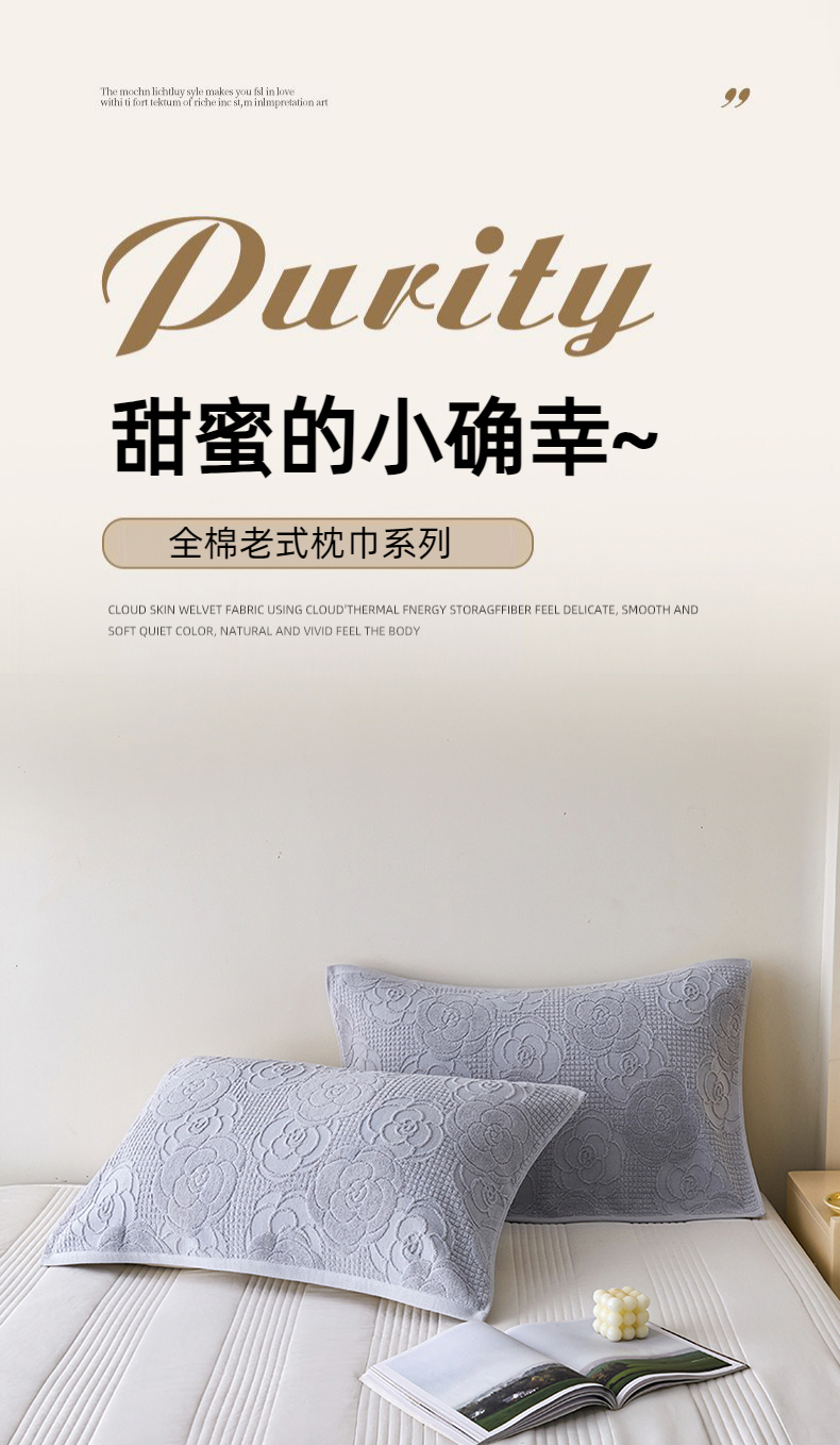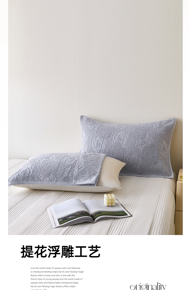 商品名称:悦然毛巾被 2025新款全棉纯棉老式枕巾毛圈款 玫瑰物语浅灰