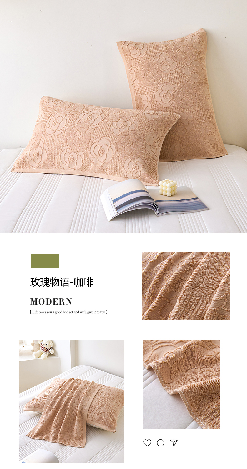 (总)悦然毛巾被 2025新款全棉四层提花纱布美拉德凤格枕套,花蝶红,花蝶咖,花蝶蓝,蔓叶咖,蔓叶蓝,蔓叶棕,玫瑰格调咖,玫瑰格调棕,素布花灰,素布花蓝,野韵,野韵棕,组合