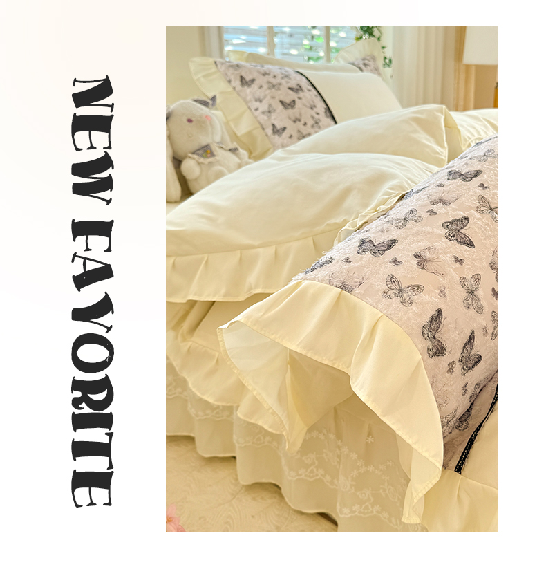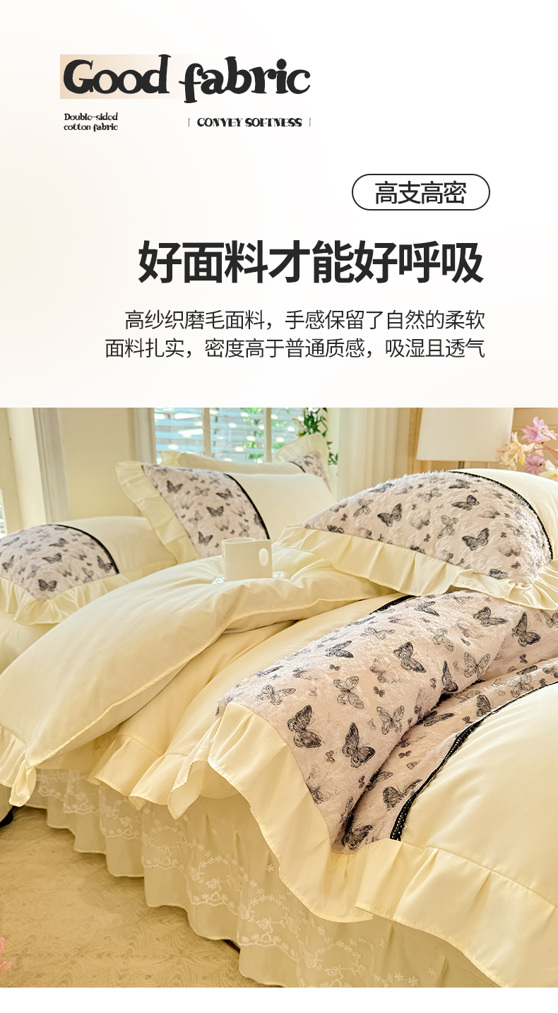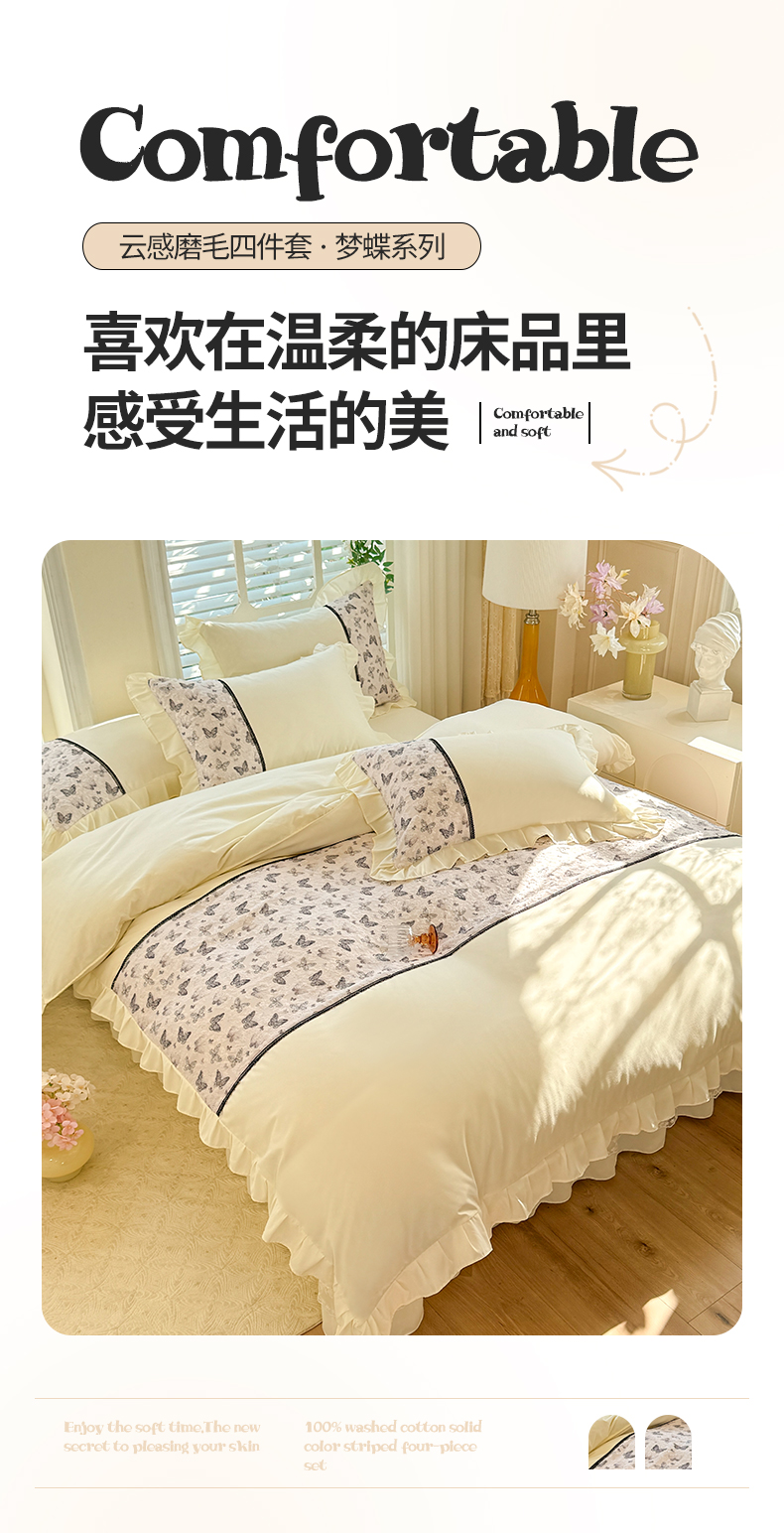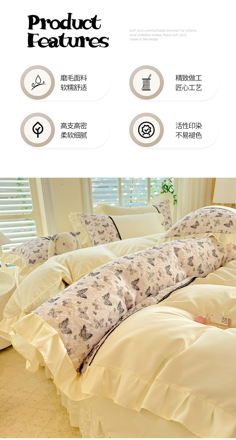 商品名称:芭比蔓家纺 2025新款云感磨毛四件套-梦蝶 梦蝶-米
