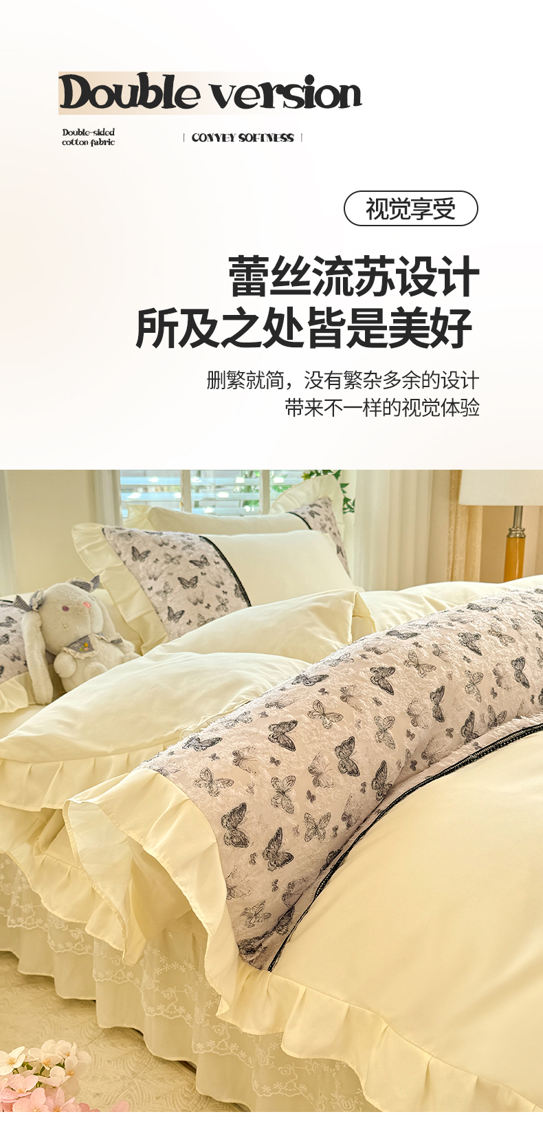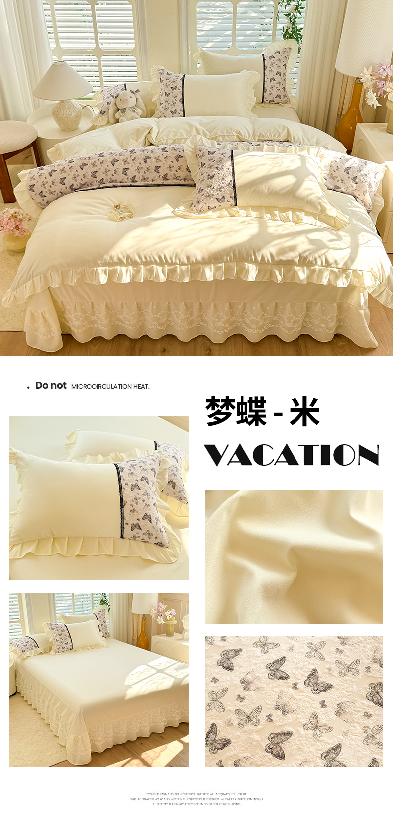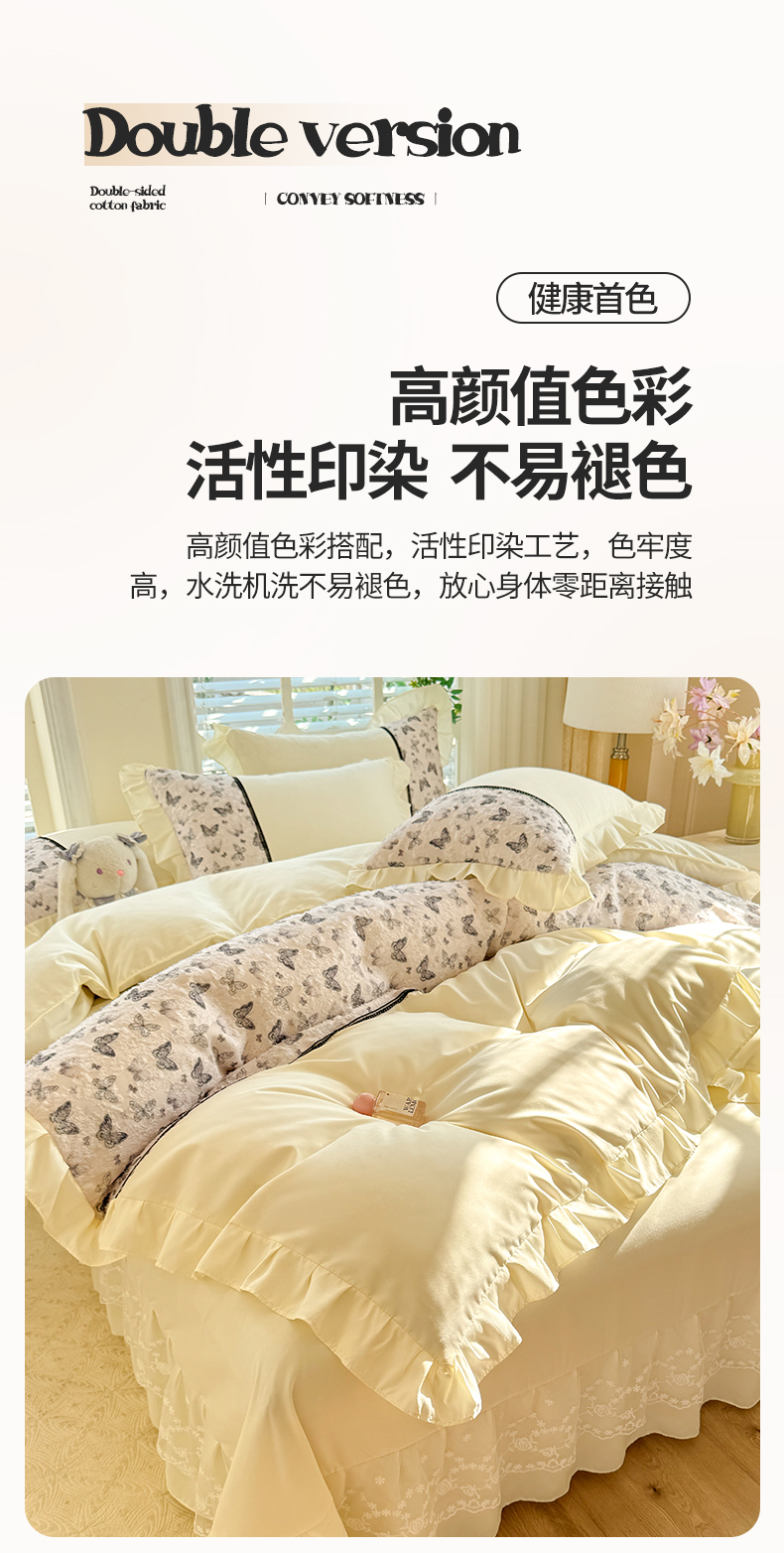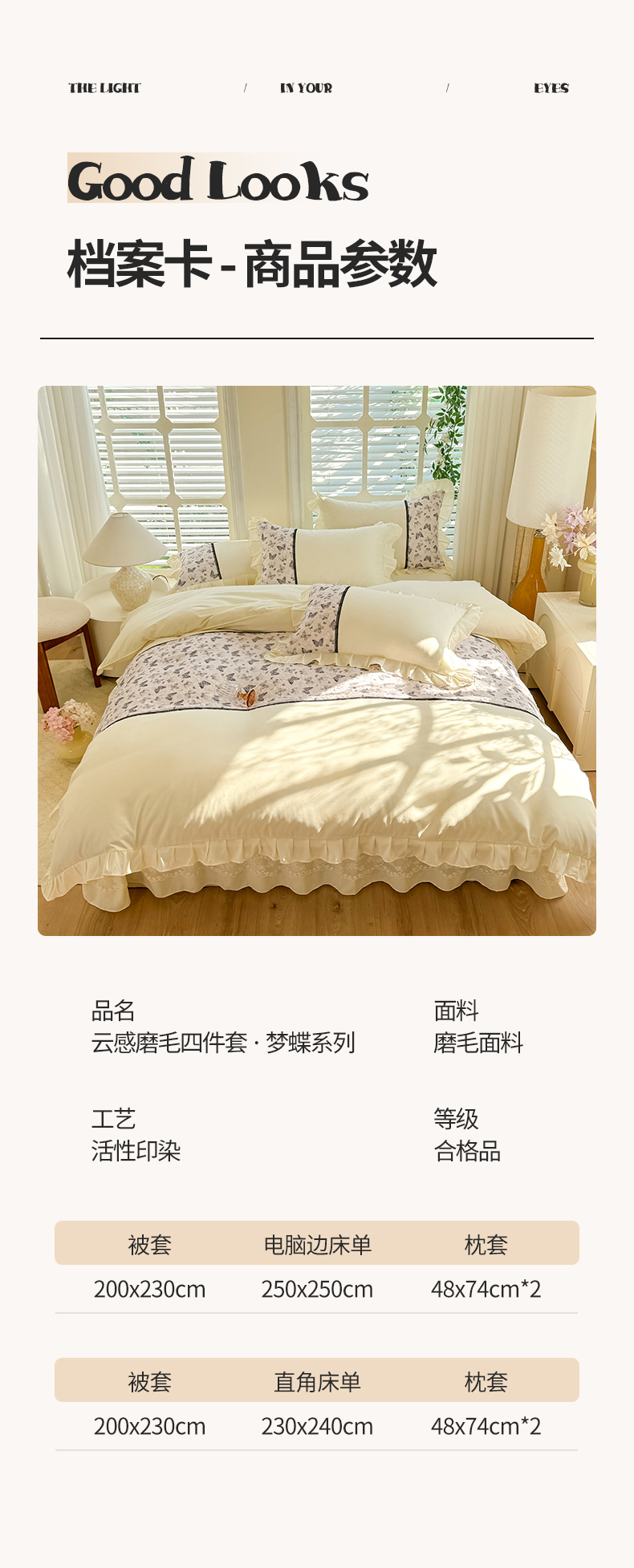 商品名称:芭比蔓家纺 2025新款云感磨毛四件套-梦蝶 梦蝶-米